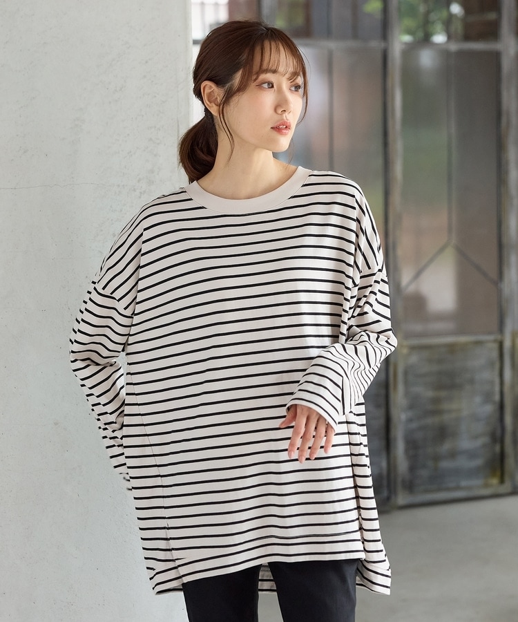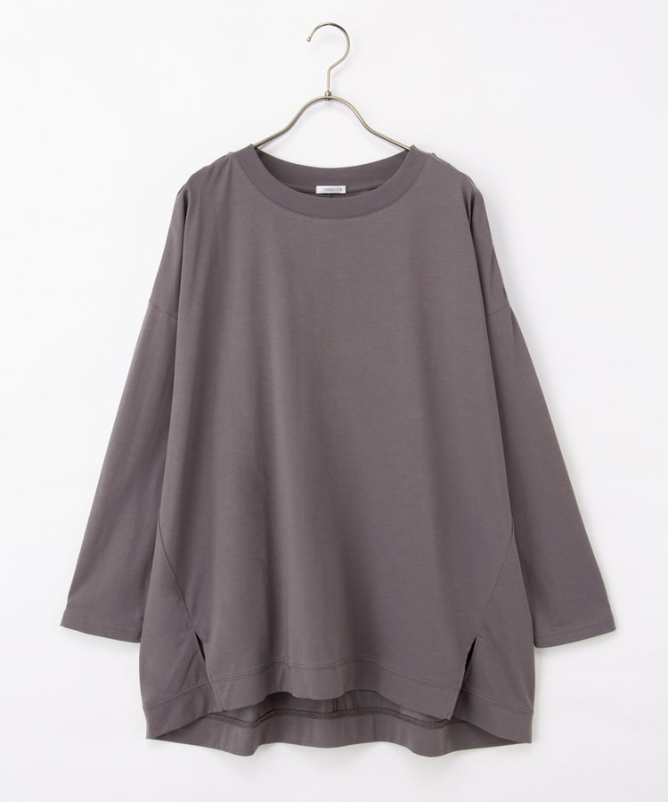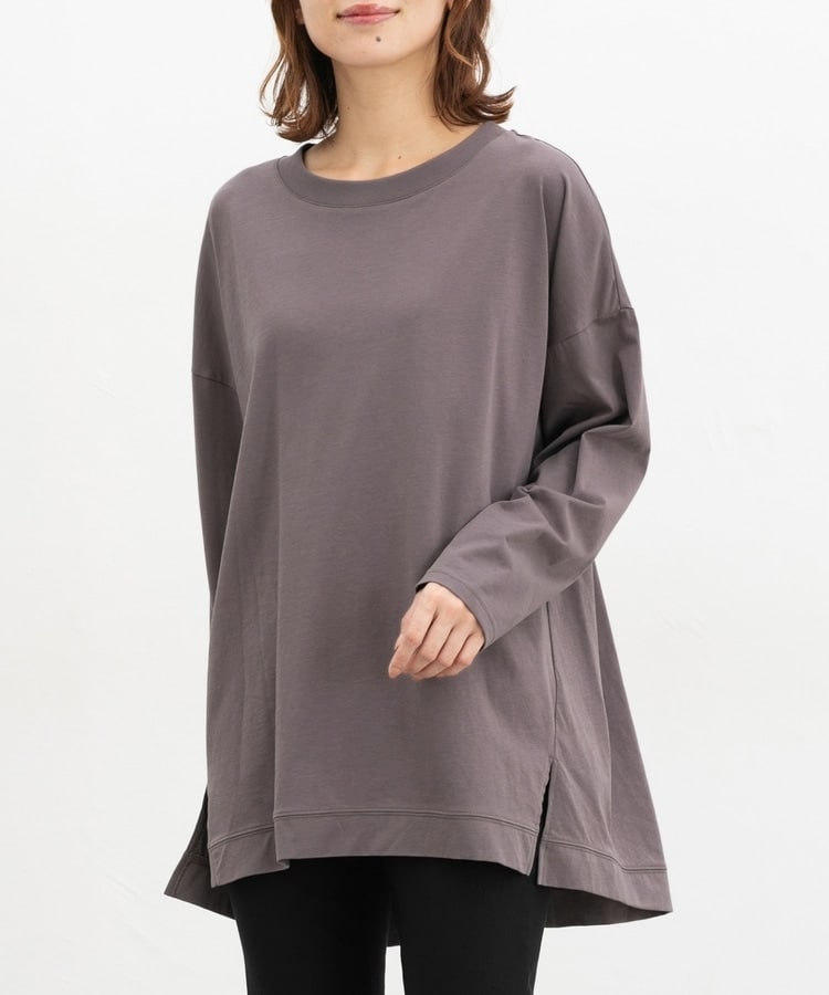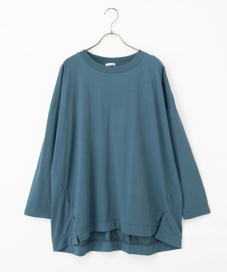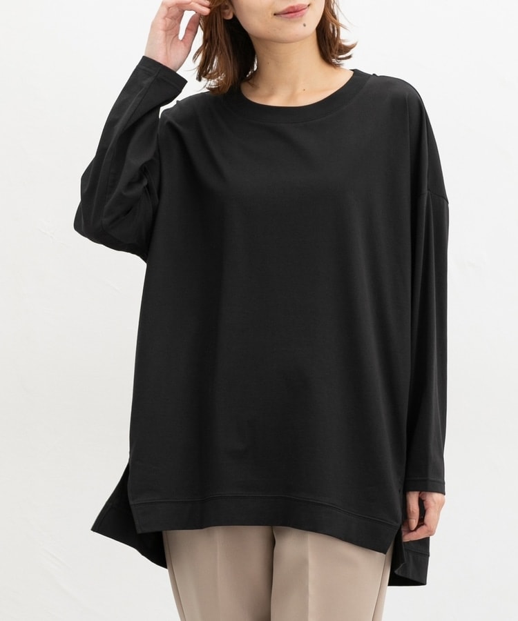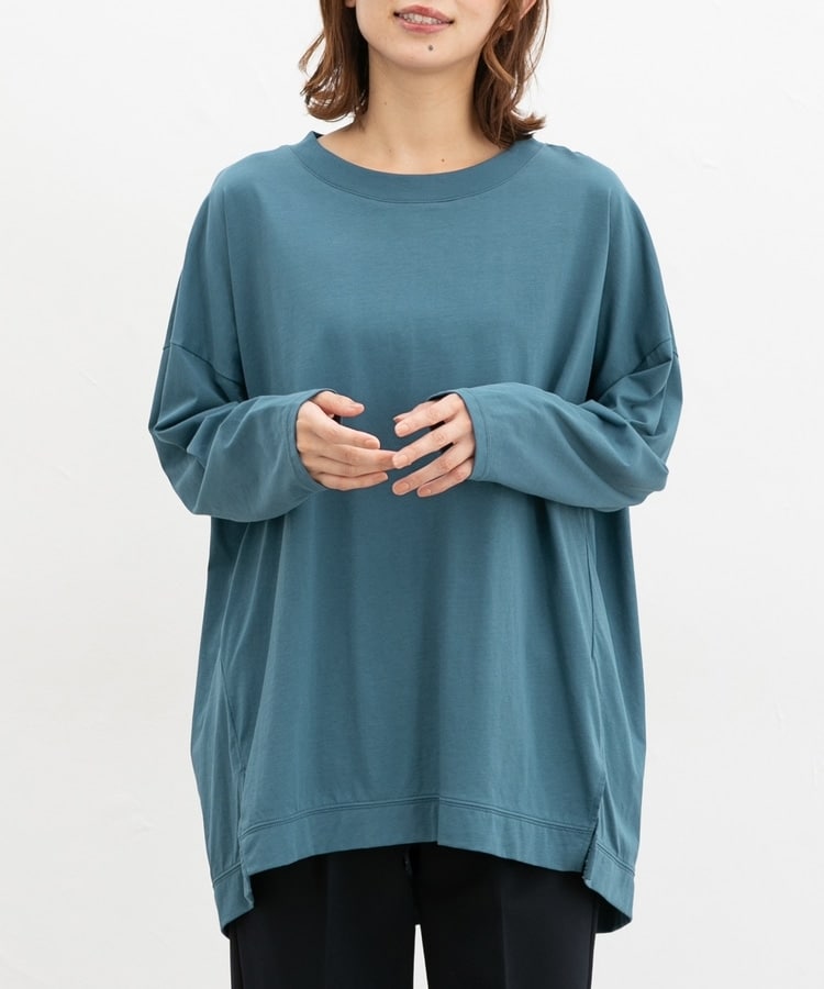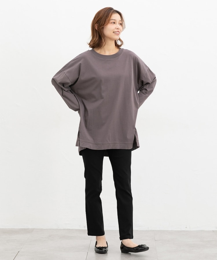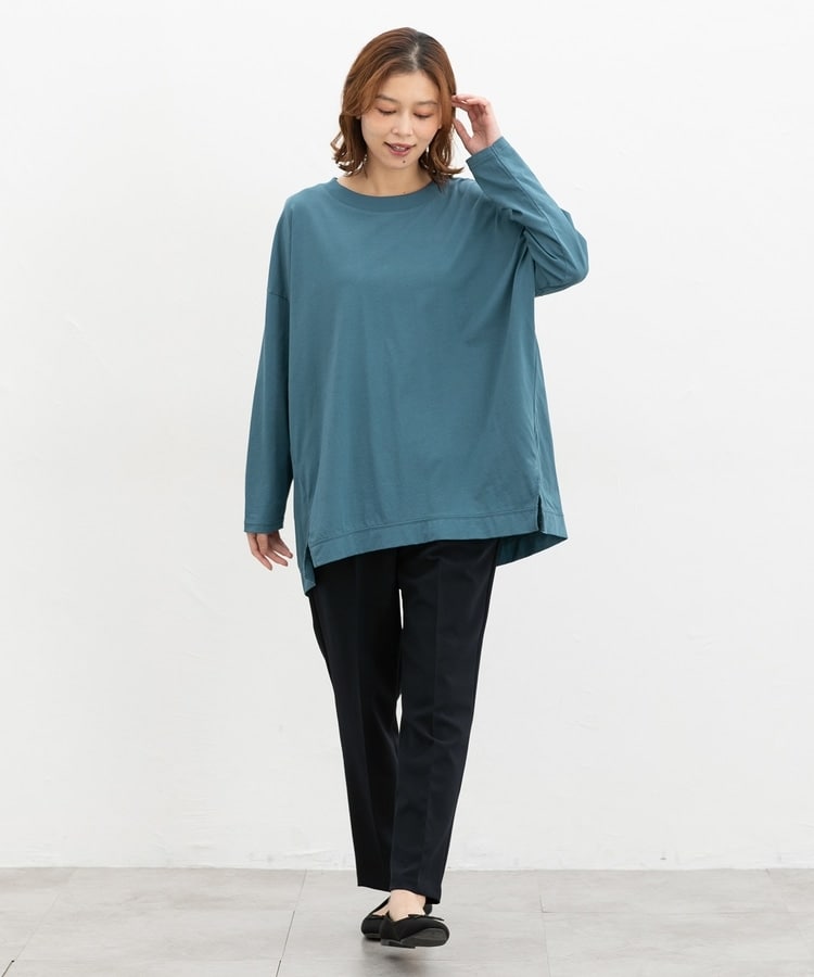 ゆったり幅とヒップがすっぽり隠れる丈感で体型もカバー。