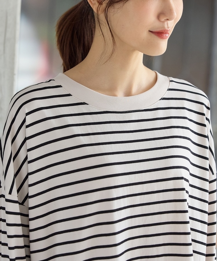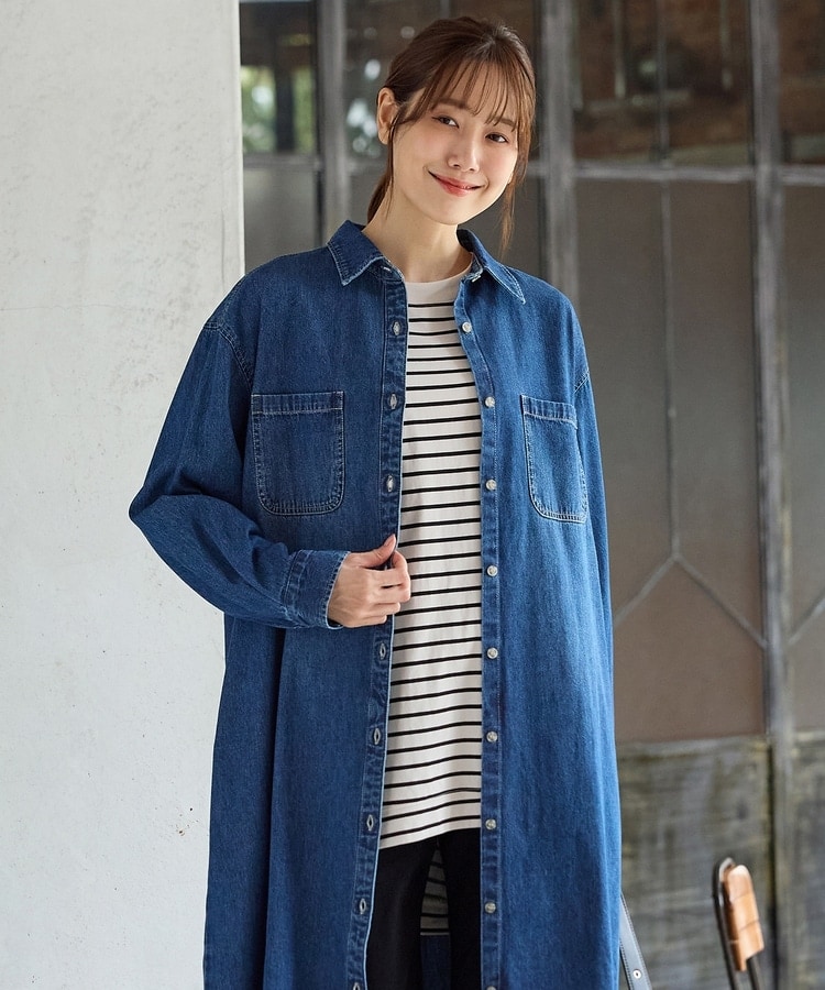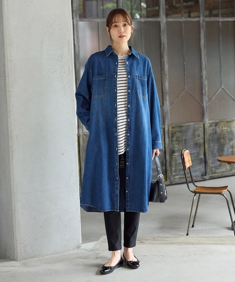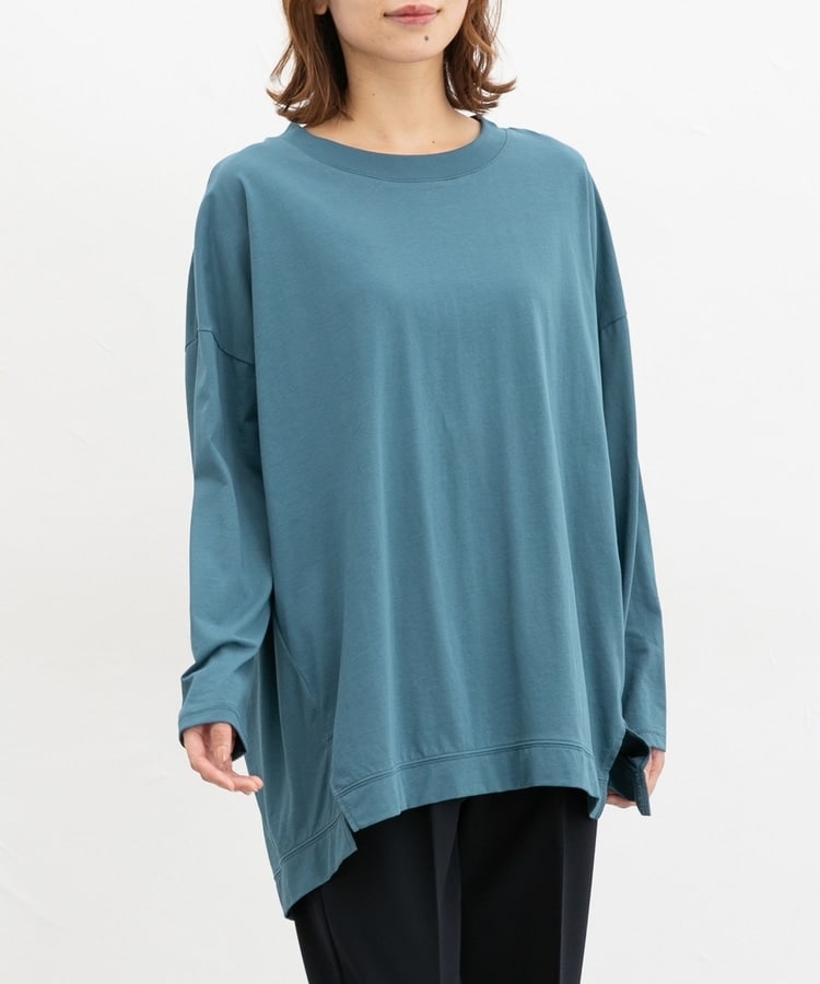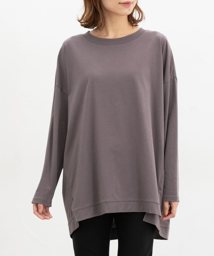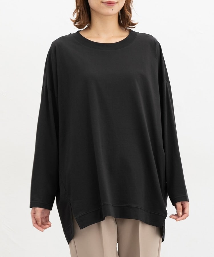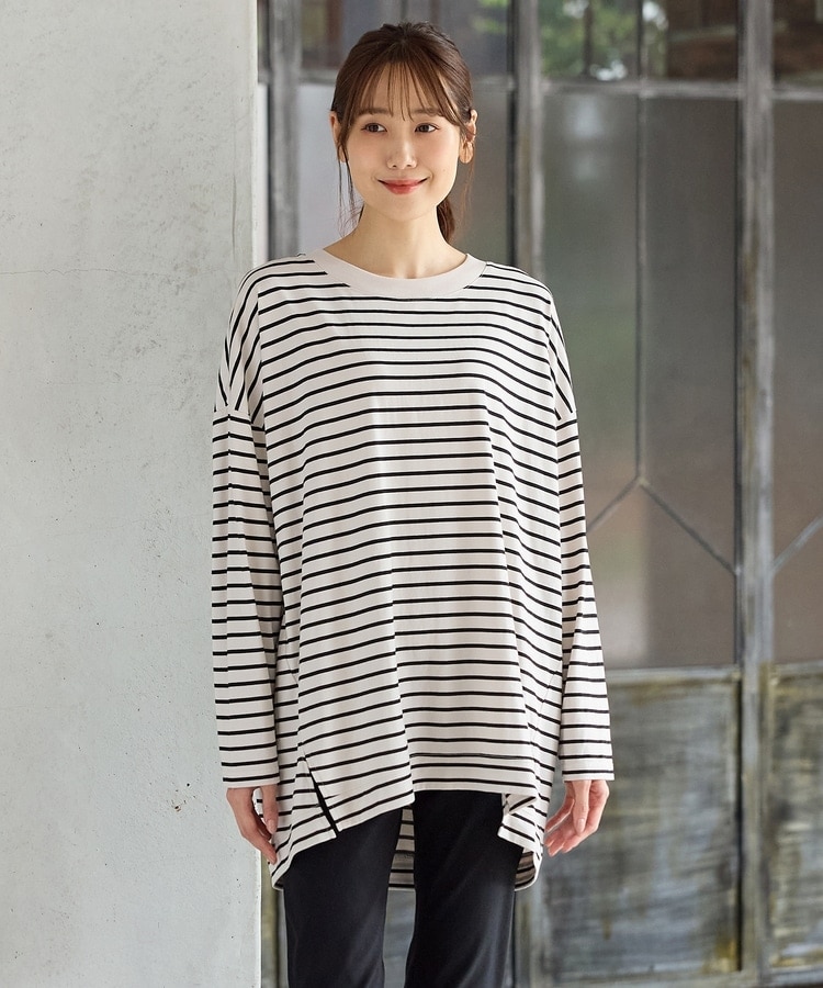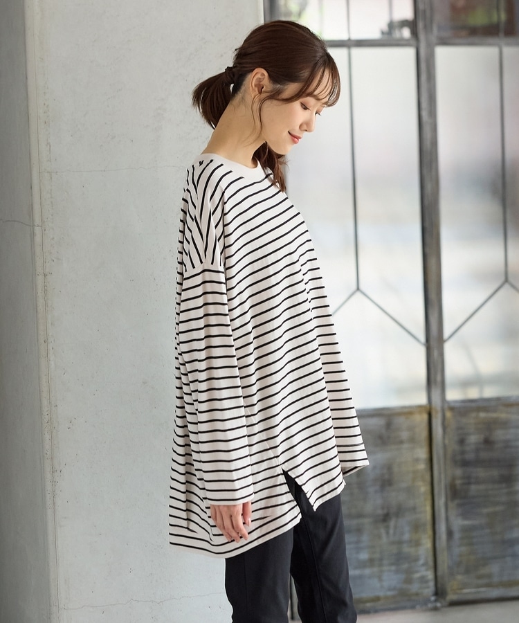 ゆったり幅とヒップがすっぽり隠れる丈感で体型もカバー。