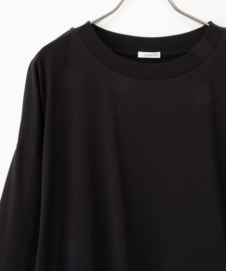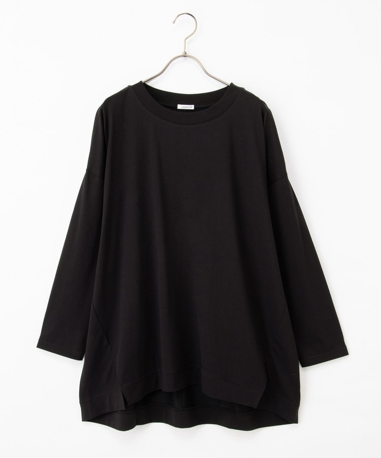 後ろ裾にタックを入れた立体的なコクーンシルエットと前後差のある丈で、シンプルながら大人可愛いデザイン。