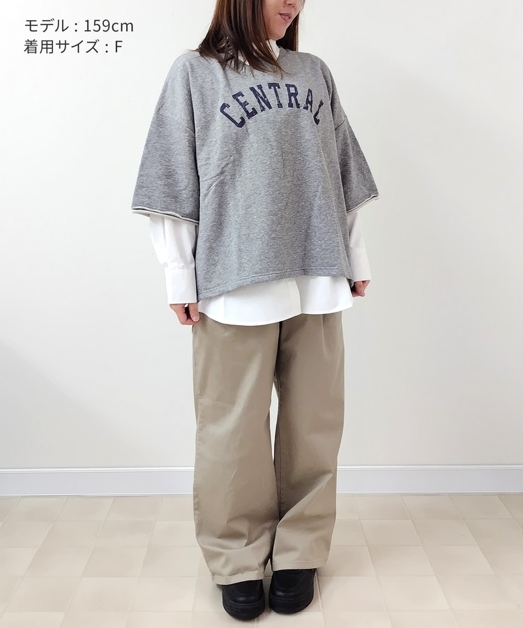 ゆったり幅とヒップが隠れる丈感で体型もカバー。