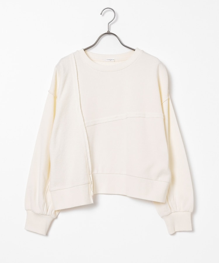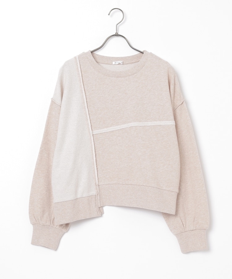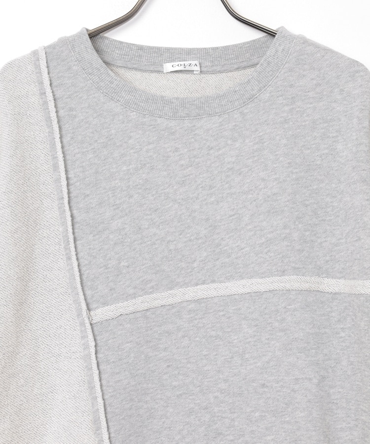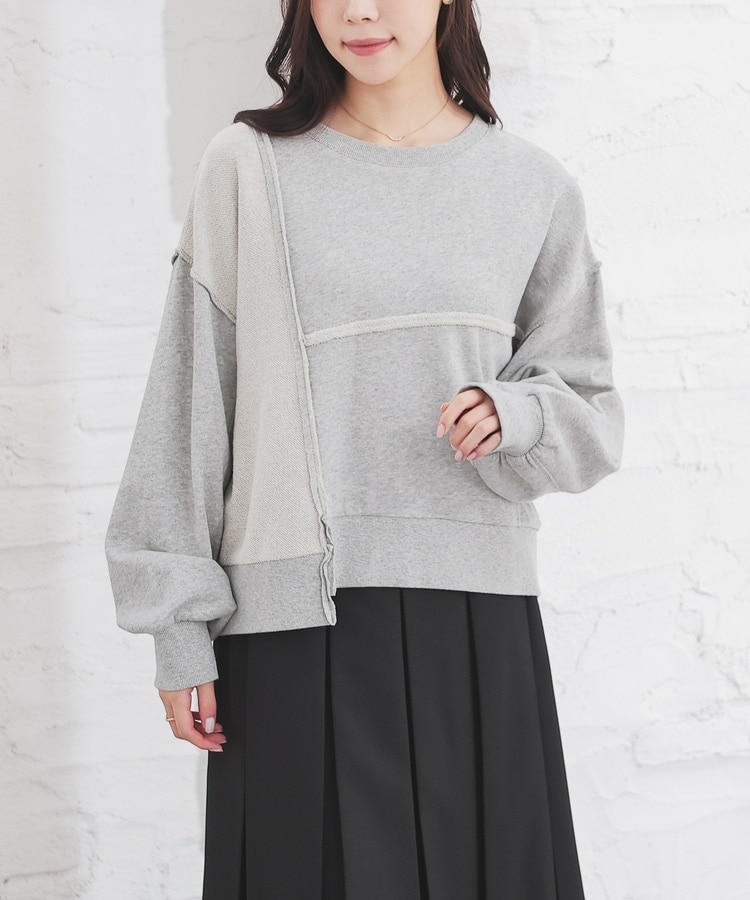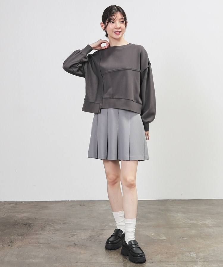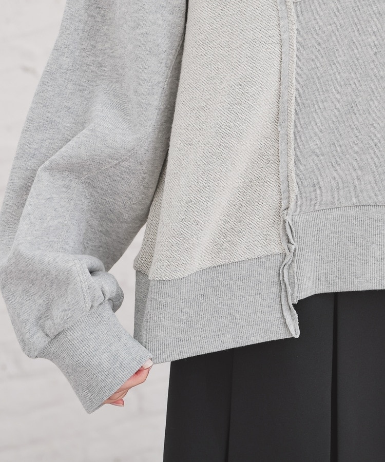 部分的に生地の裏側や縫い目を表側にして、リメイク風に仕上げた、こなれ感のあるデザイン。