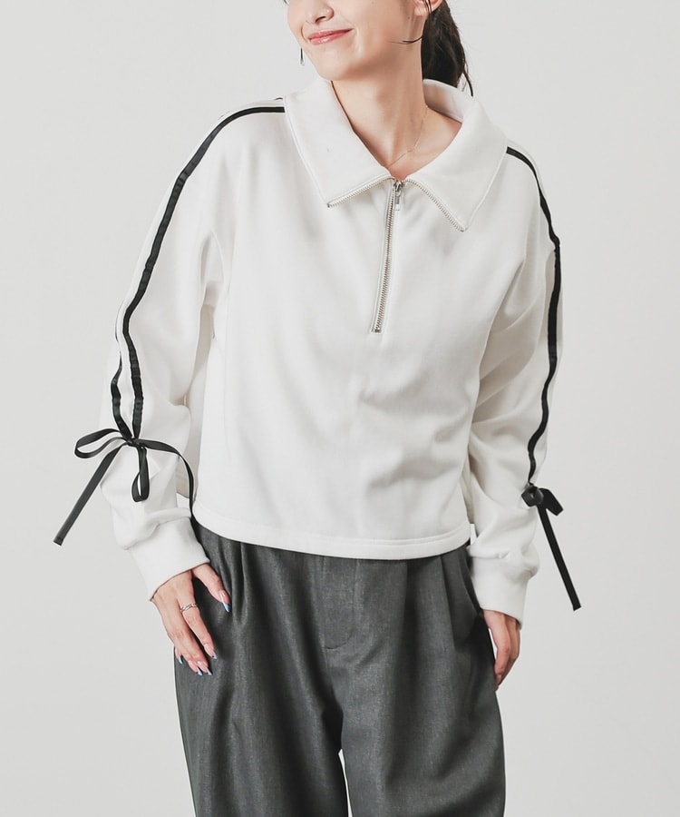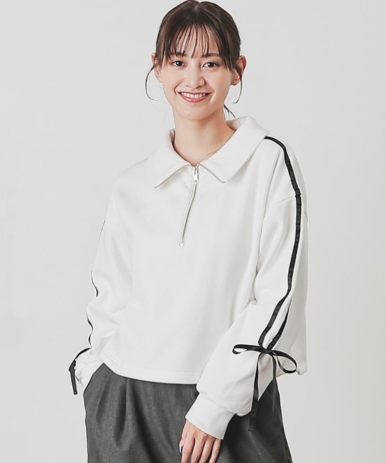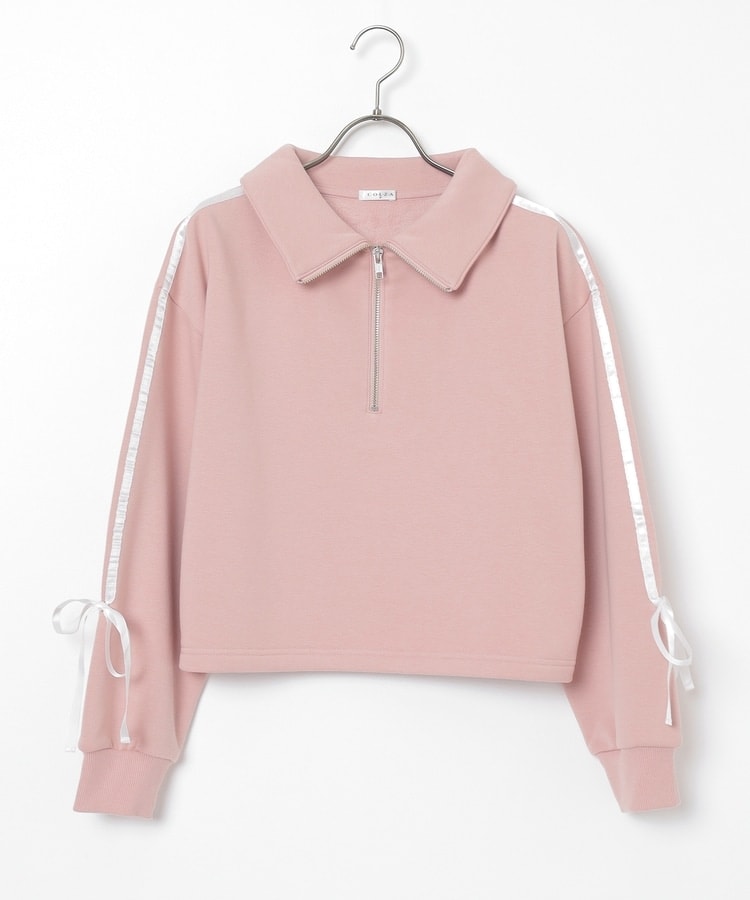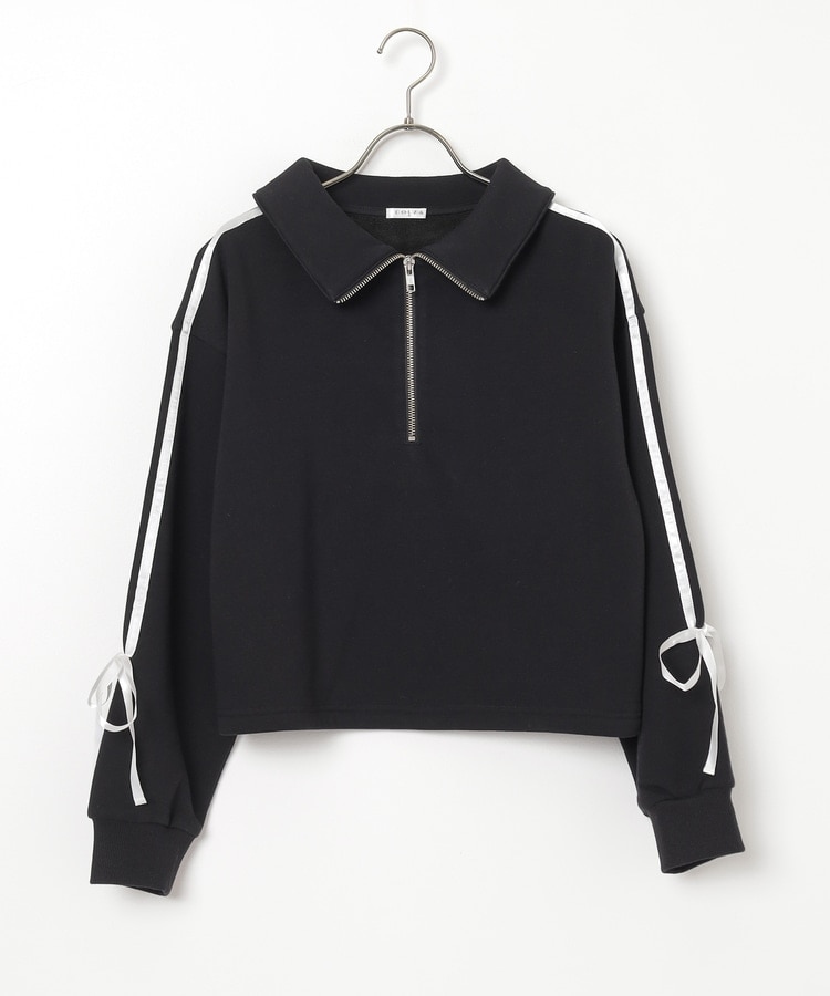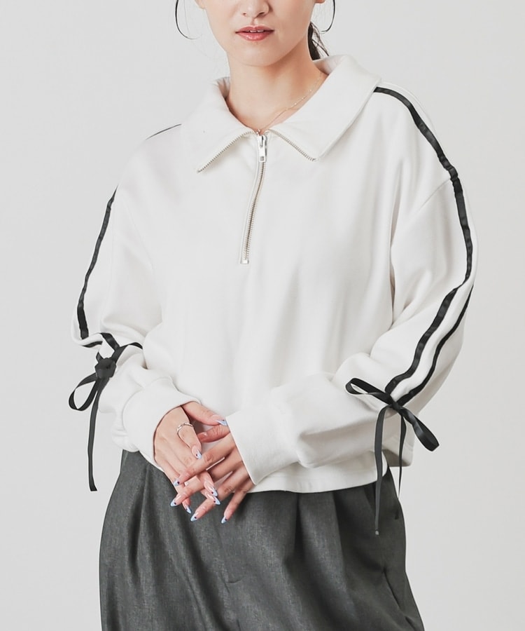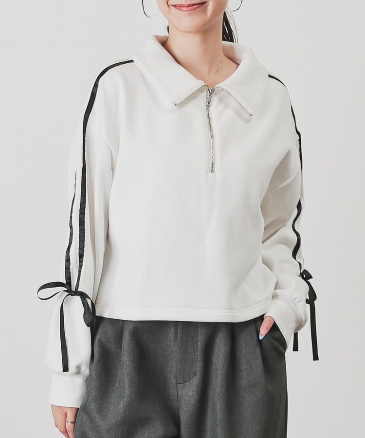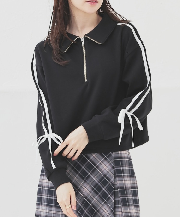 袖のラインがアクセントになるスポーティーなデザインにリボンで可愛さをプラス。