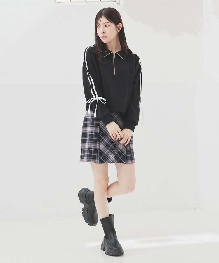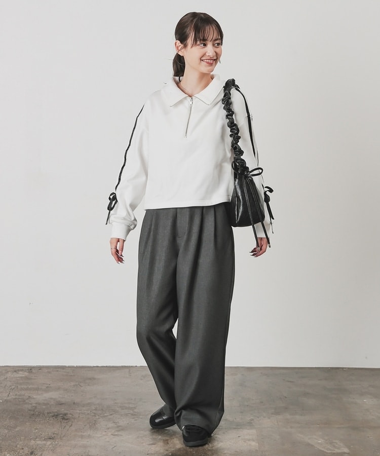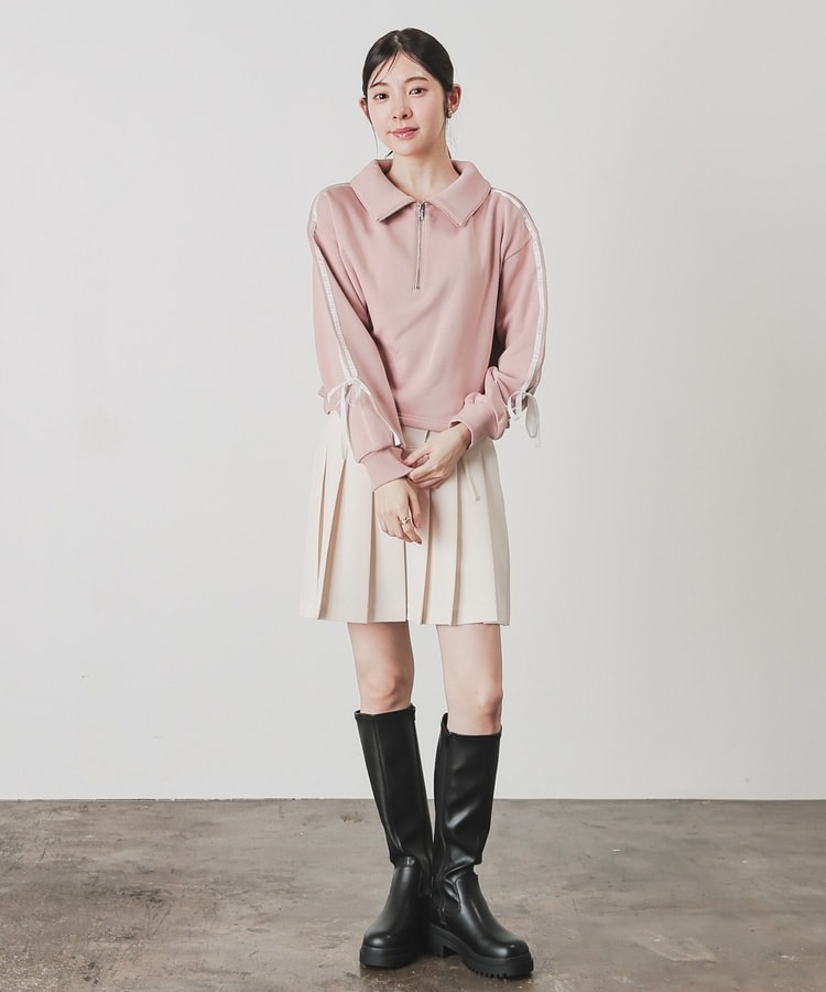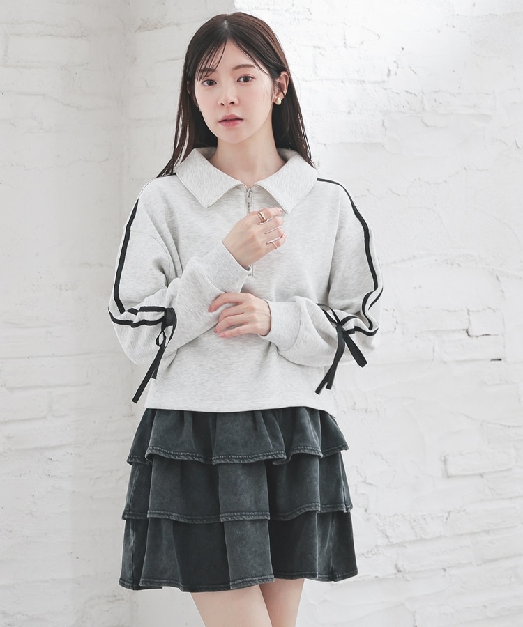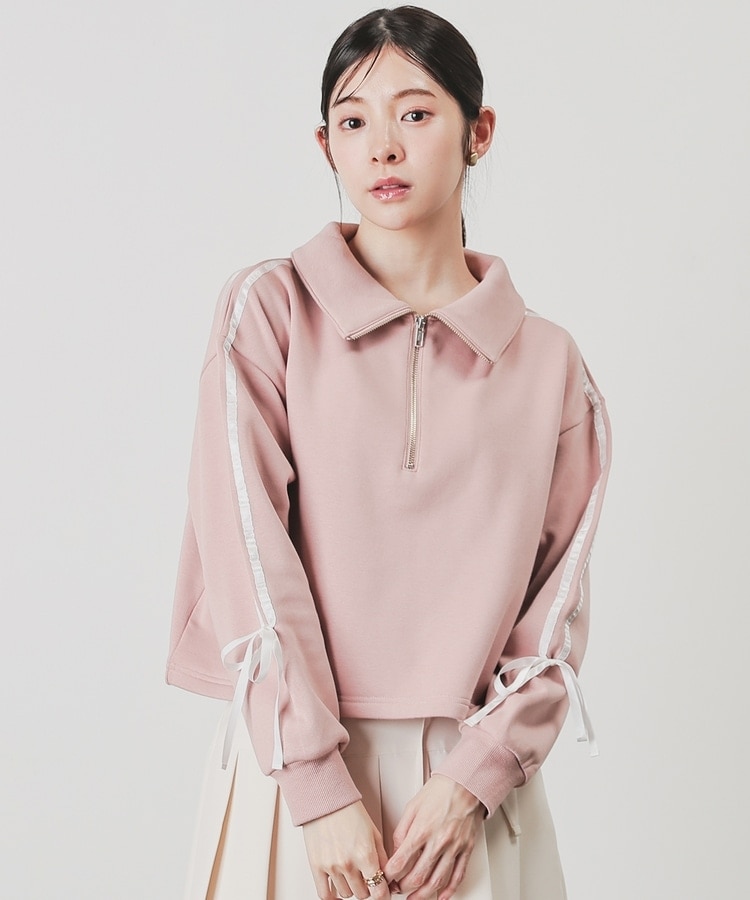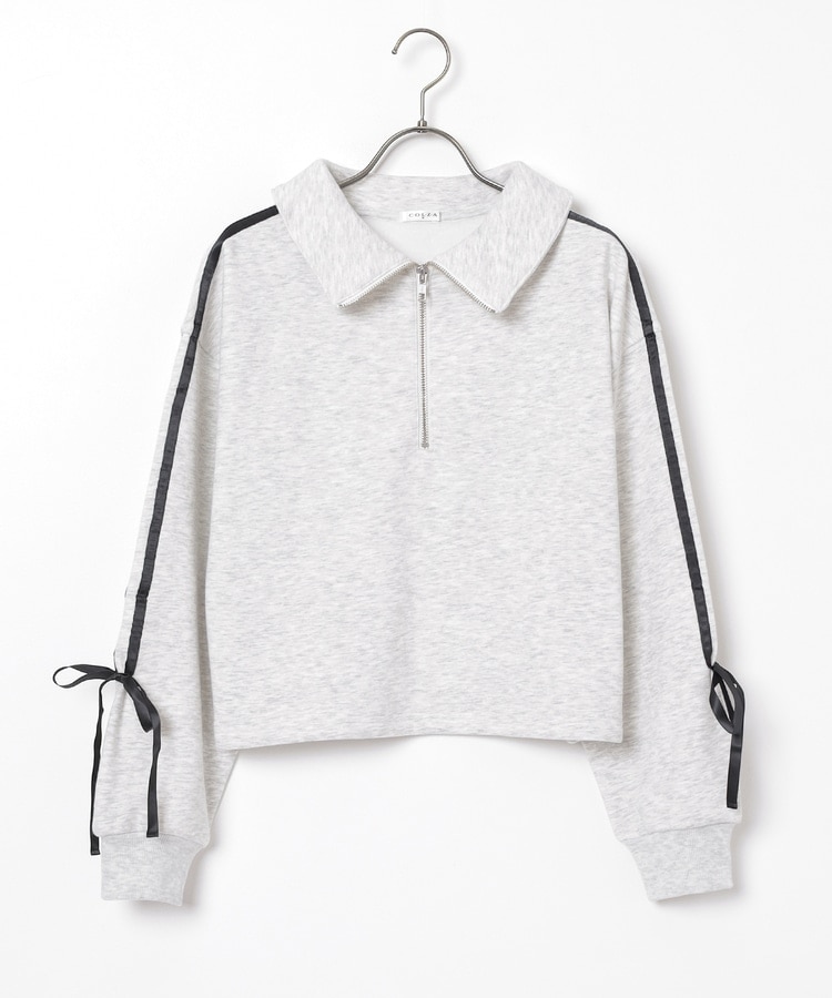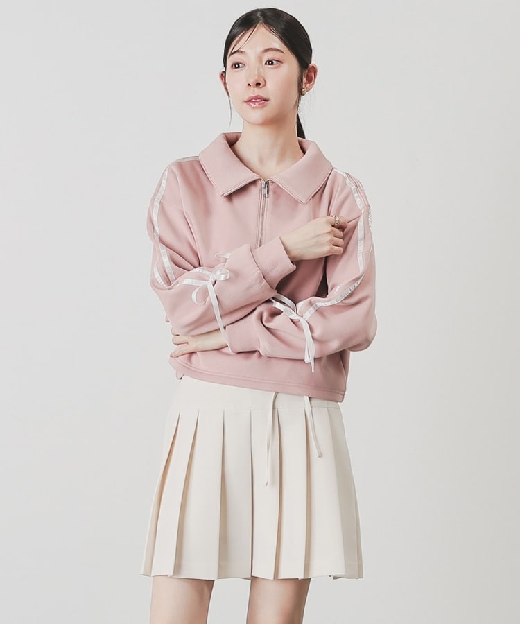 袖のラインがアクセントになるスポーティーなデザインにリボンで可愛さをプラス。