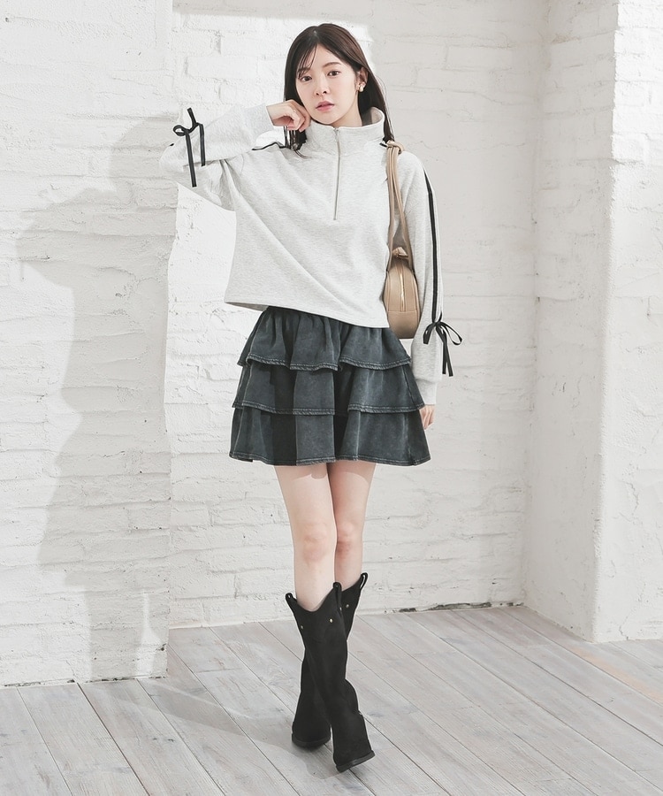 デニムストレートパンツやミニフレアスカートなど、ボリュームのあるボトムスを合わせると好バラン。