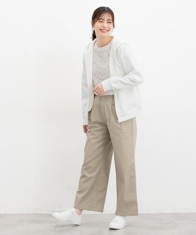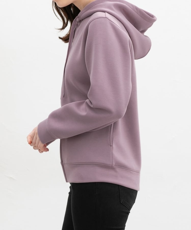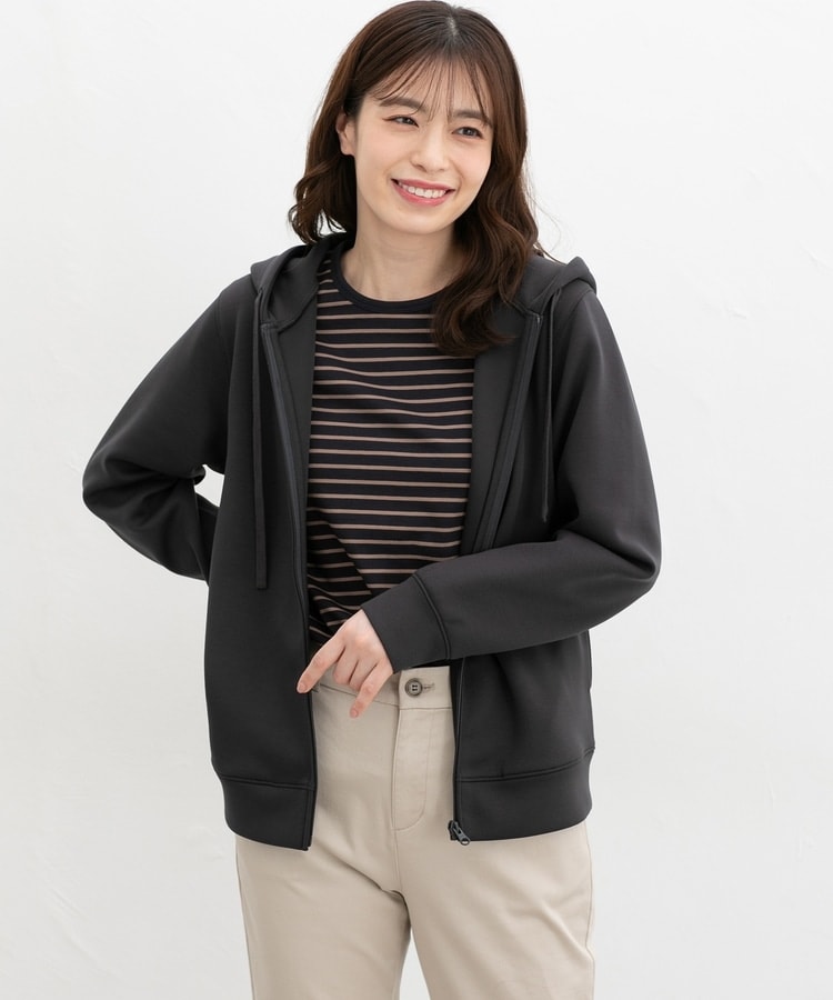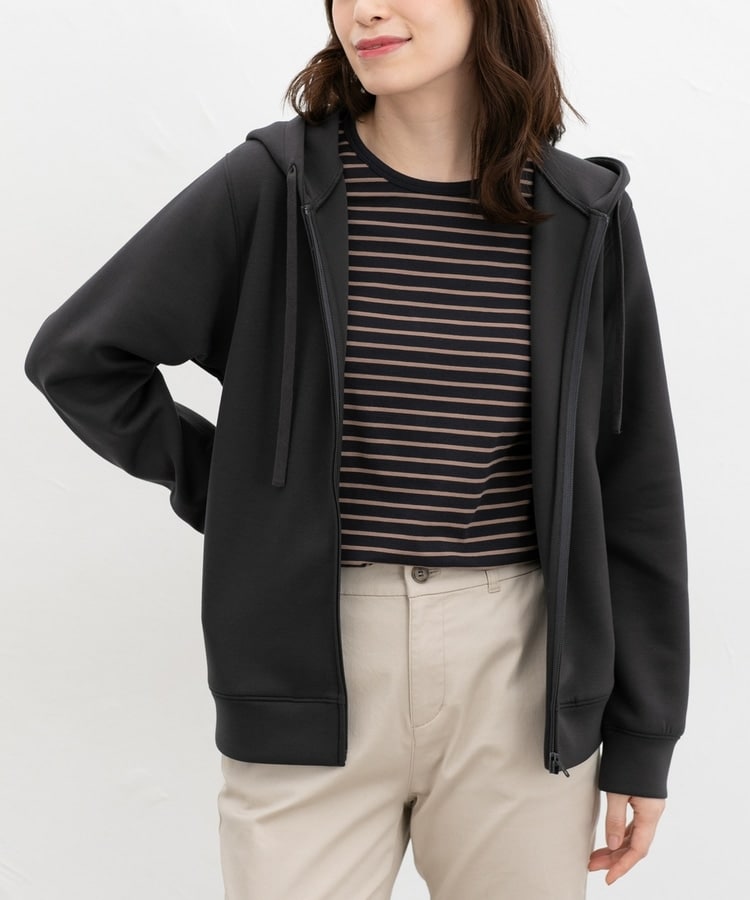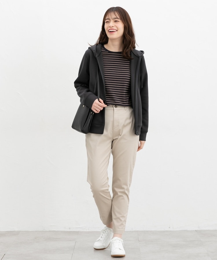 ストレッチの利いた、両面が滑らかなレーヨン混のきれいめスウェット素材と、すっきりめのシルエットで、カジュアルすぎない大人な着こなしに♪