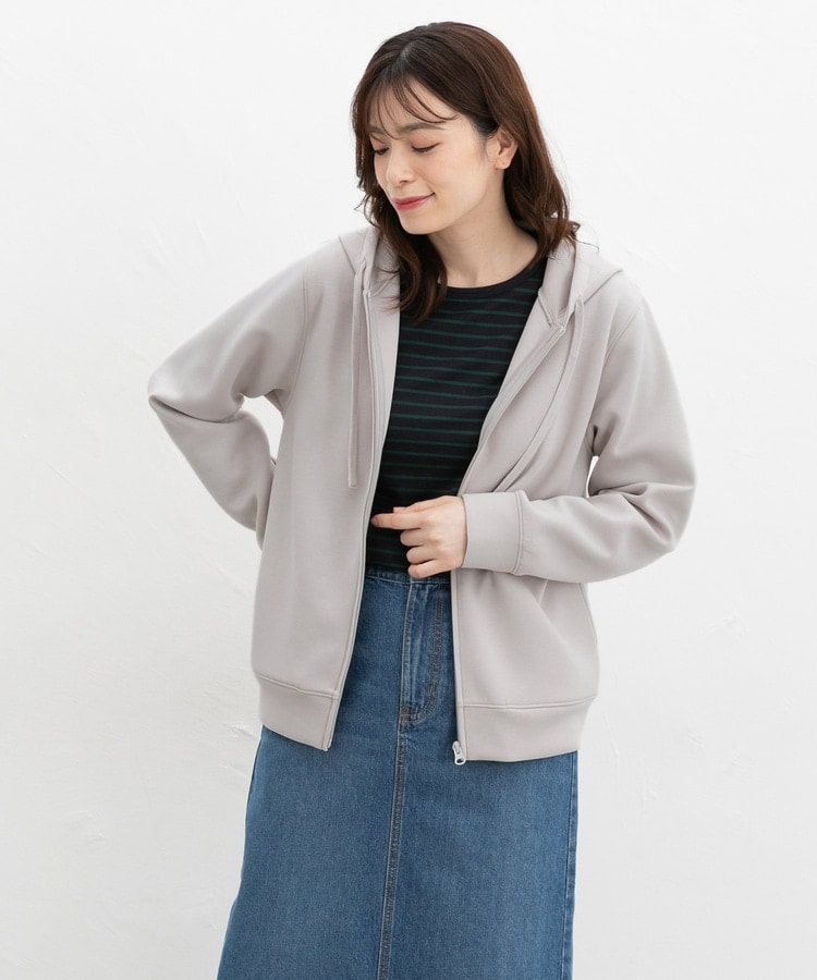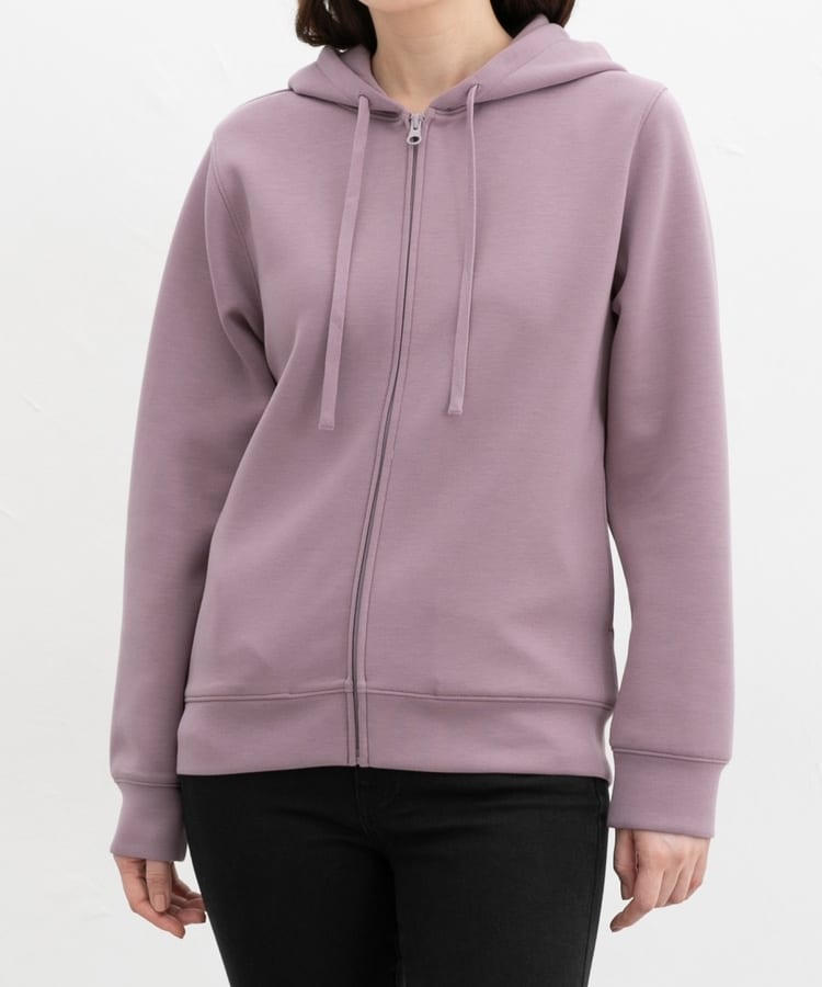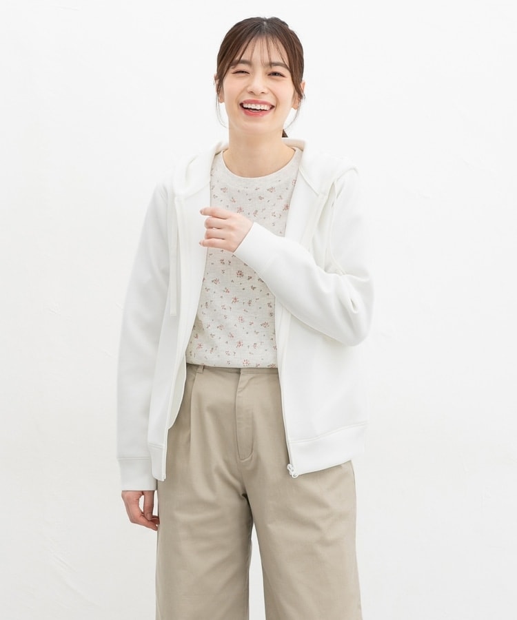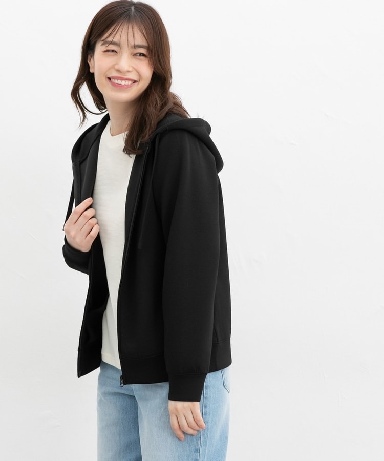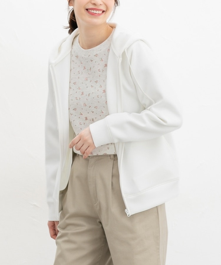 ストレッチの利いた、両面が滑らかなレーヨン混のきれいめスウェット素材と、すっきりめのシルエットで、カジュアルすぎない大人な着こなしに♪