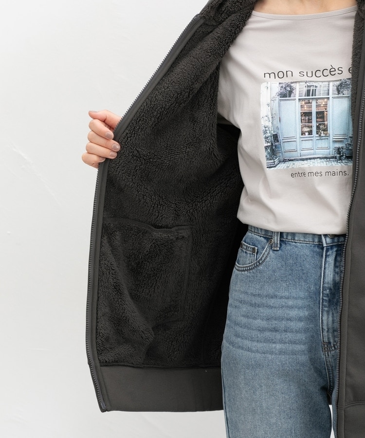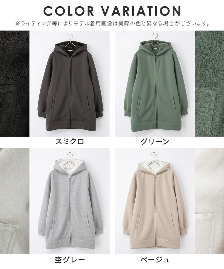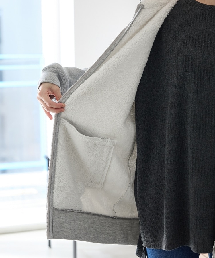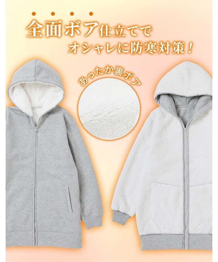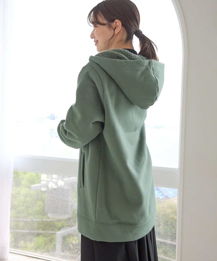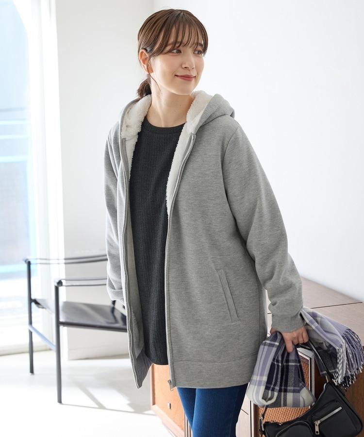 重ね着もしやすいゆったり幅とヒップがすっぽり隠れる長めの丈で、さらにあったかさアップ♪
