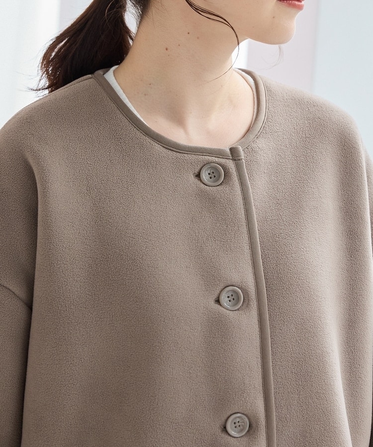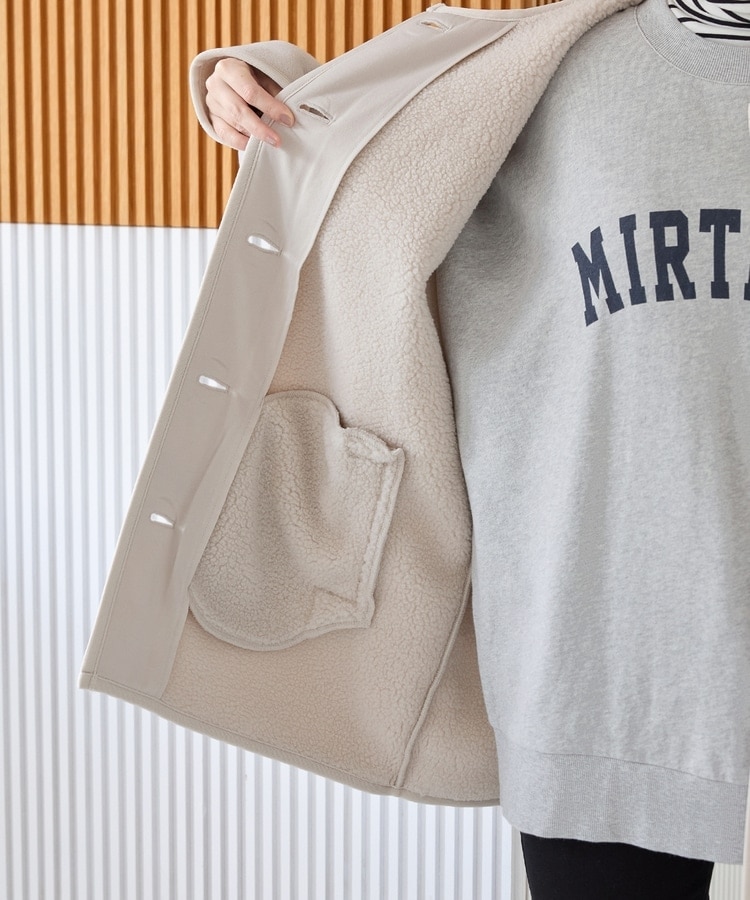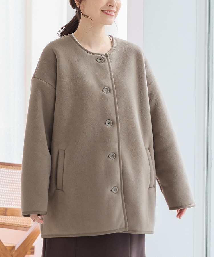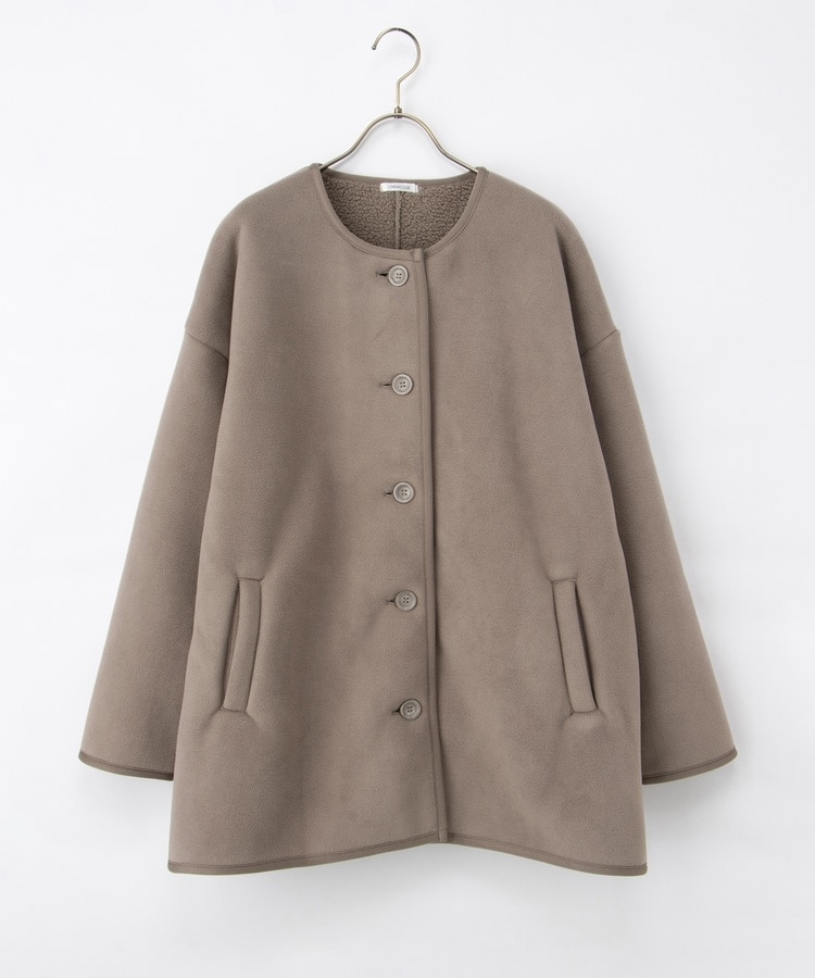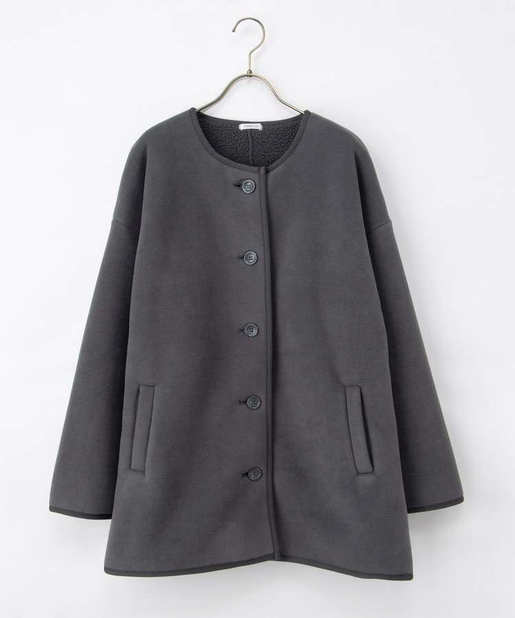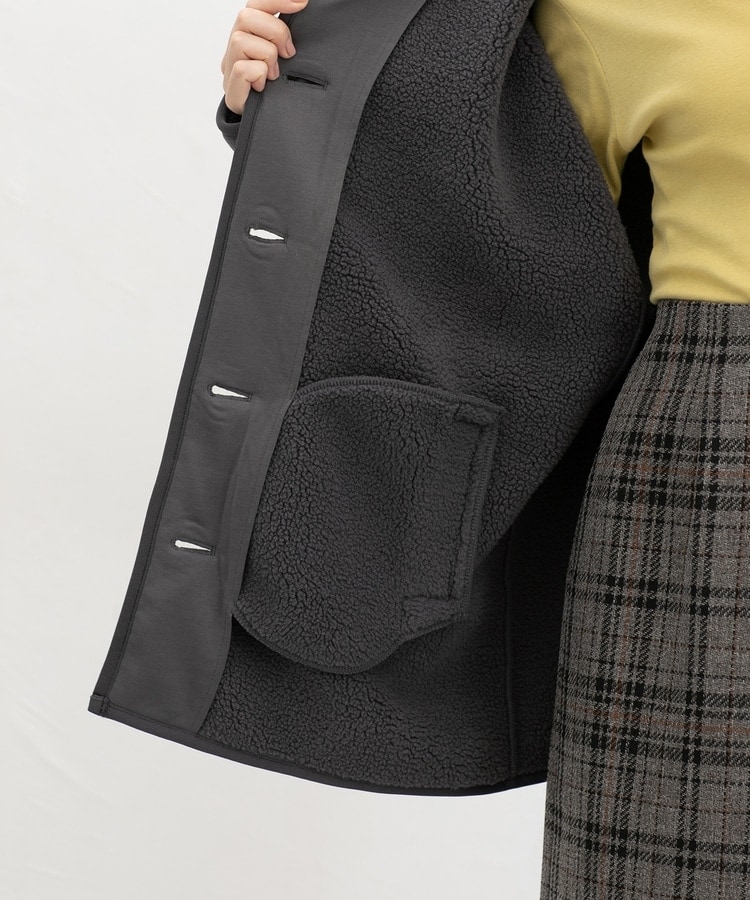 ニットやスウェットなどの上にも羽織りやすい、ゆったり幅とヒップまですっぽり隠れる丈感のリラクシーなシルエットで、体型もカバー。