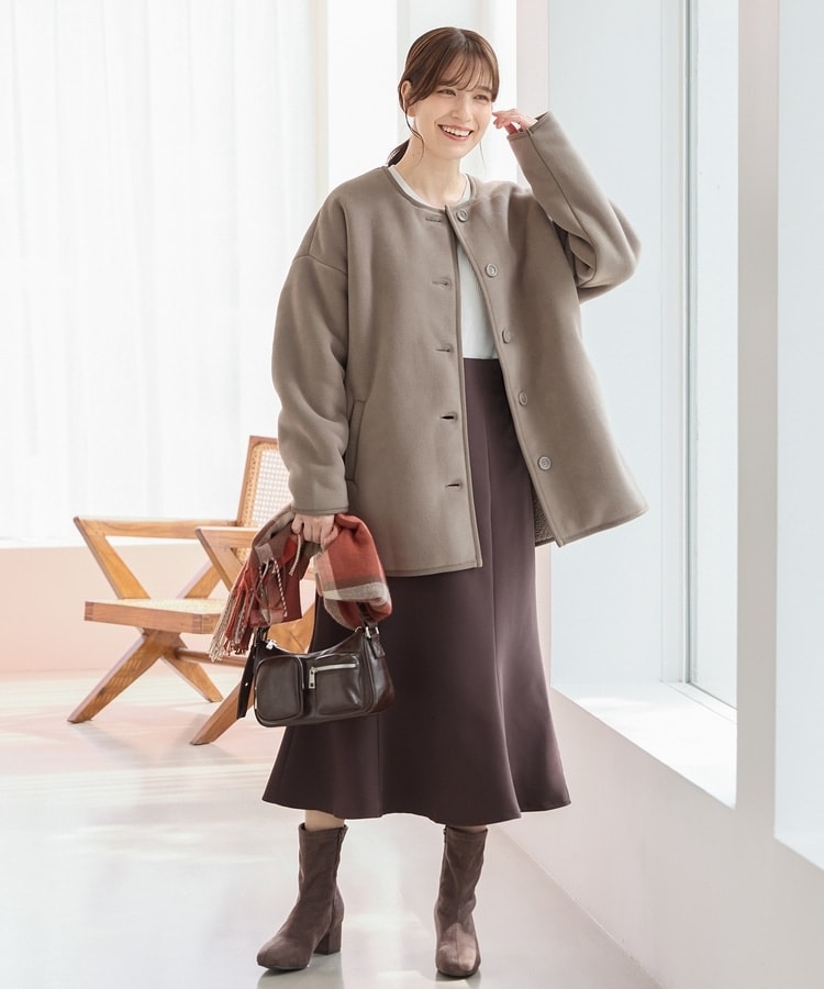 インナーをハイネックやパーカーにしたり、マフラーを巻いたりと、衿元のおしゃれを楽しむのも◎