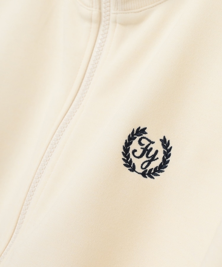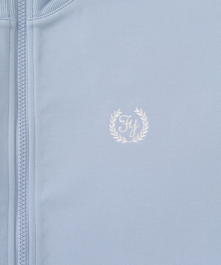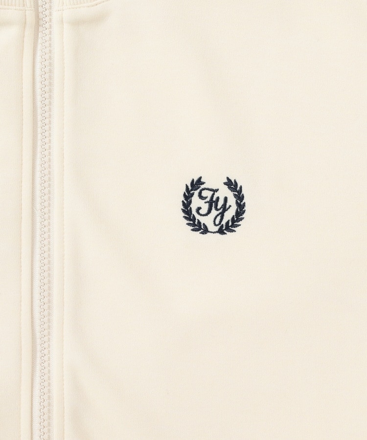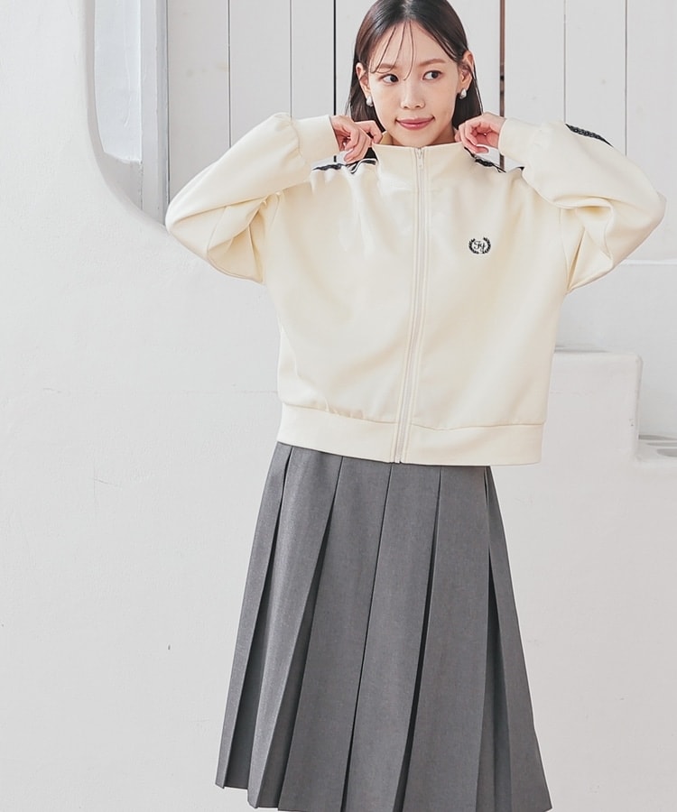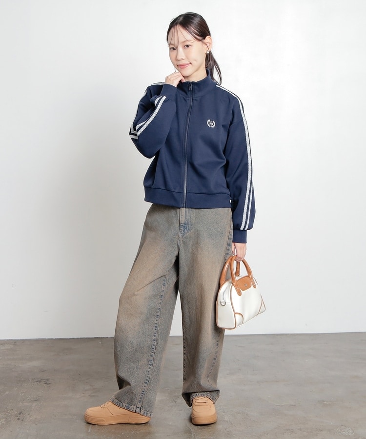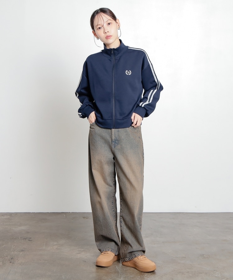 スポーティーなトラックジャケットの袖ラインにレースを使い、甘さをプラスしたデザイン。