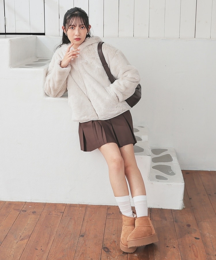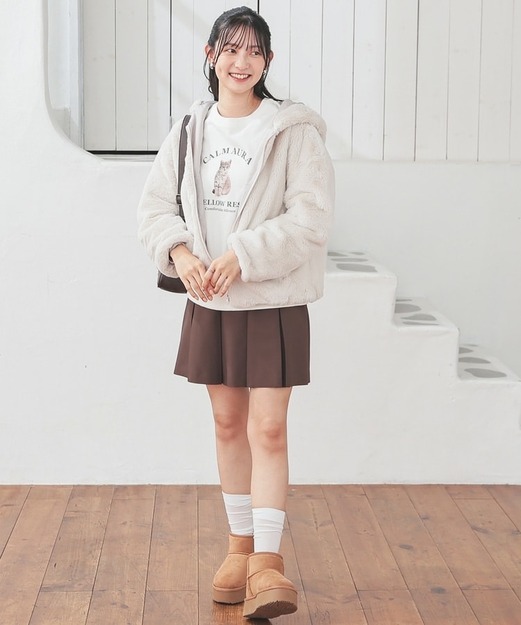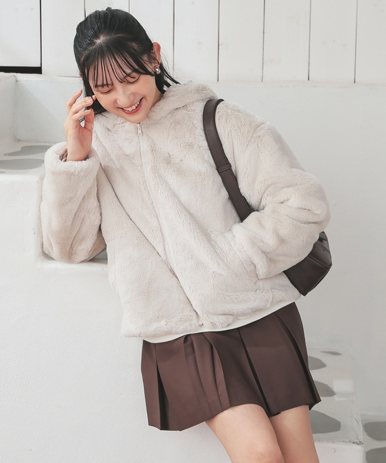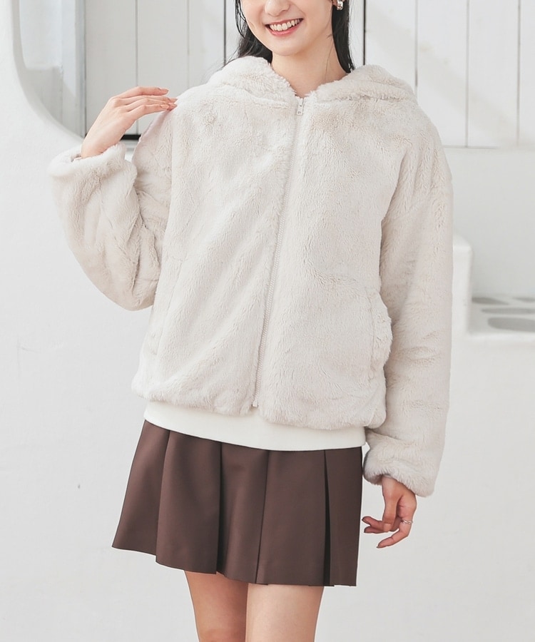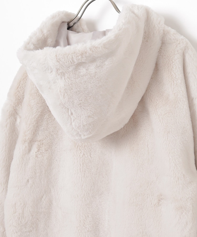 シーズンムードたっぷりなふわもこの、小顔効果も期待できるフード付きデザイン。