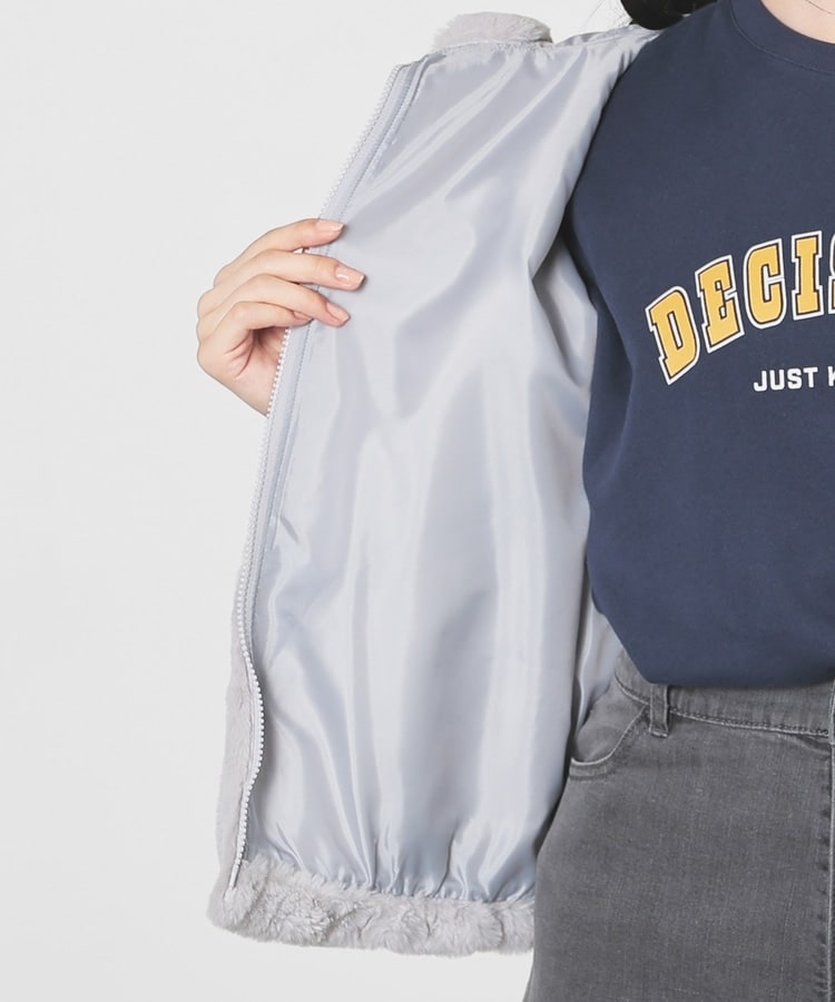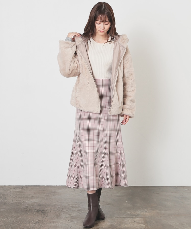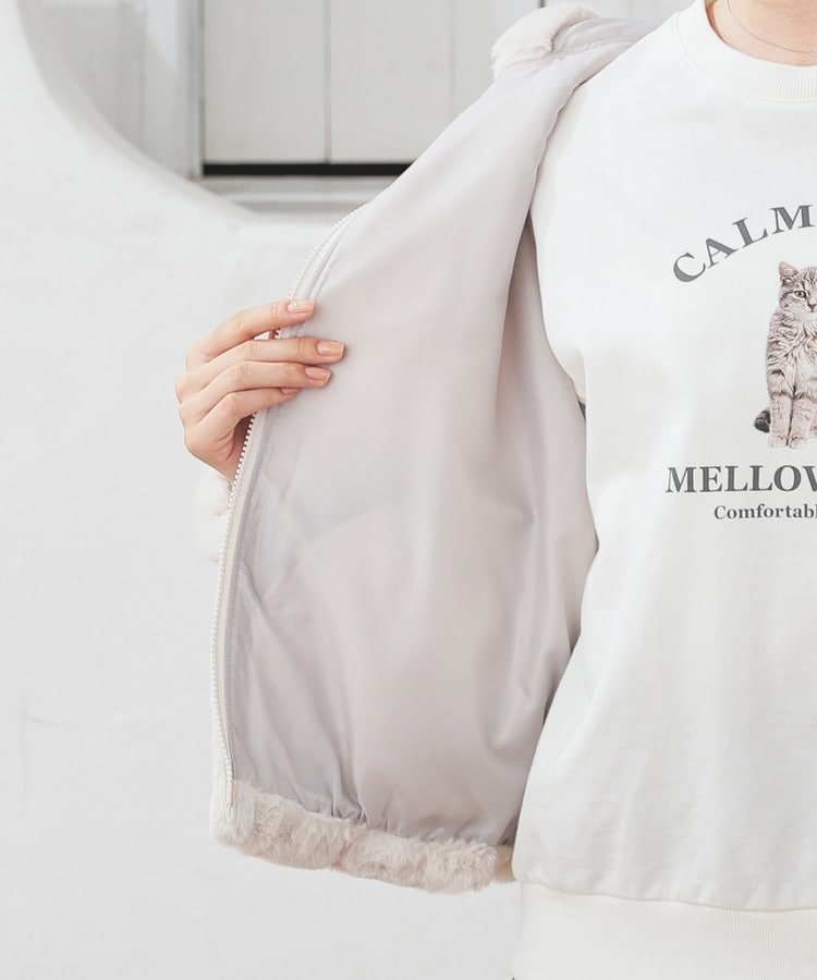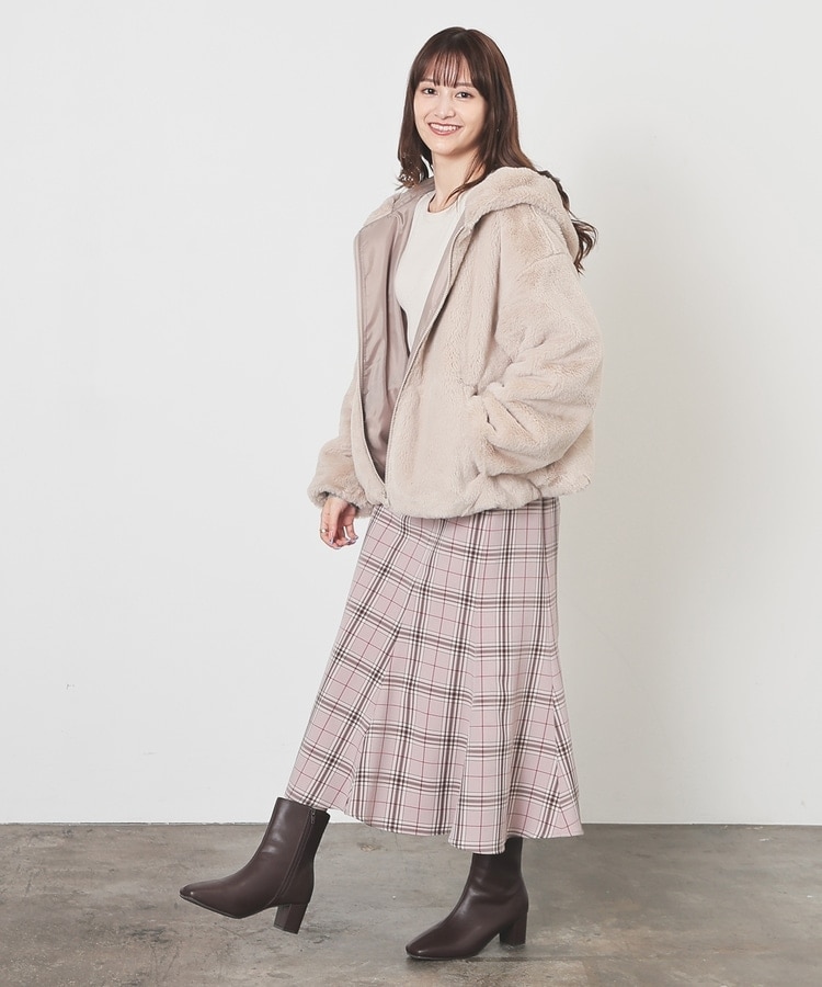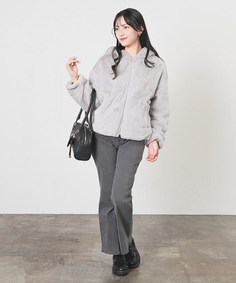シーズンムードたっぷりなふわもこの、小顔効果も期待できるフード付きデザイン。