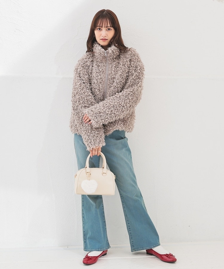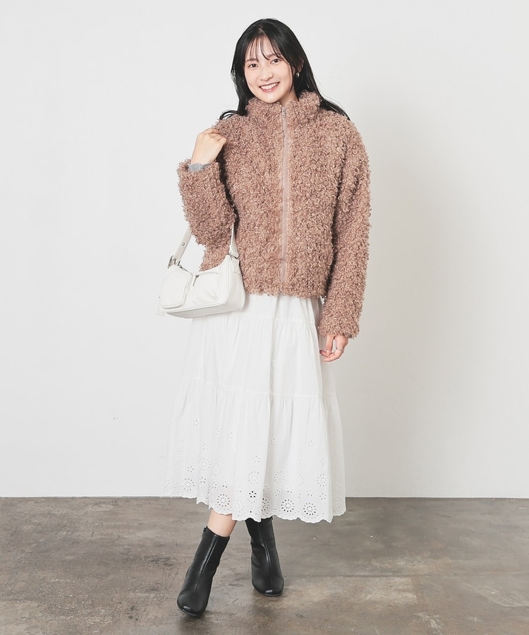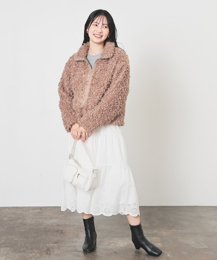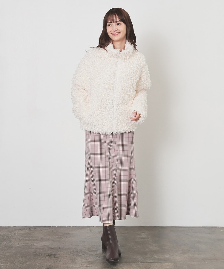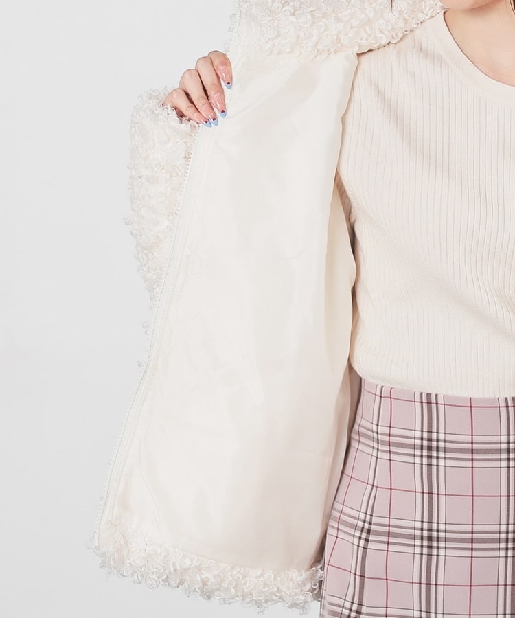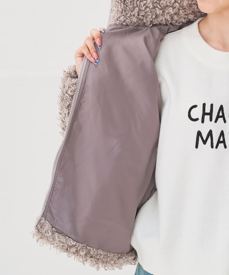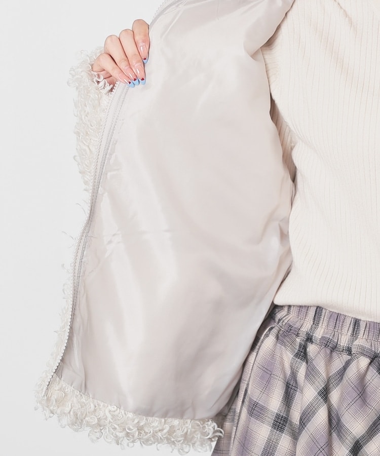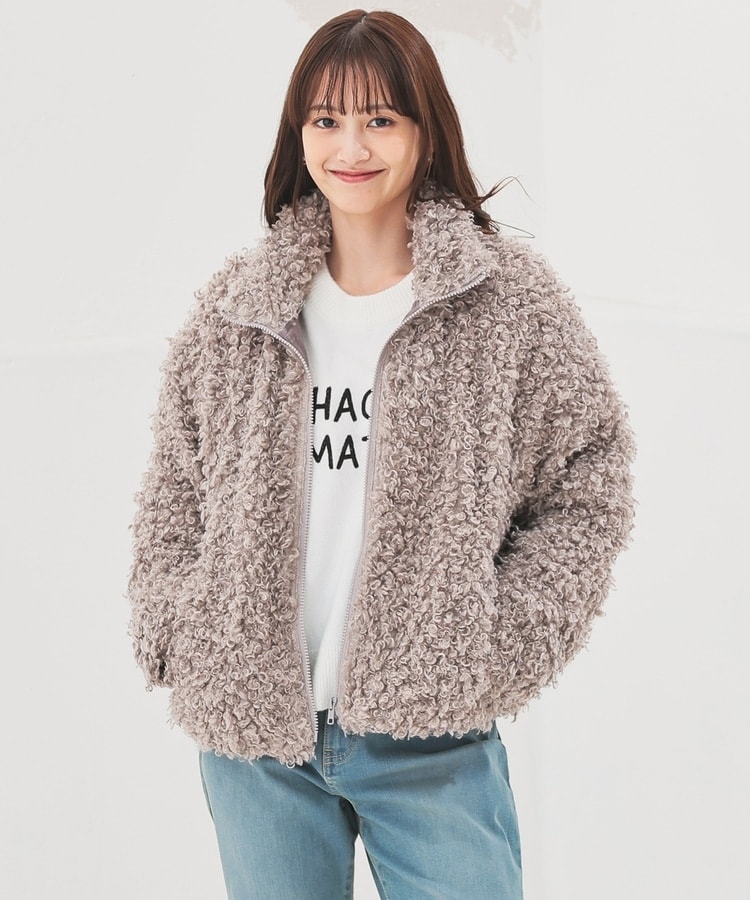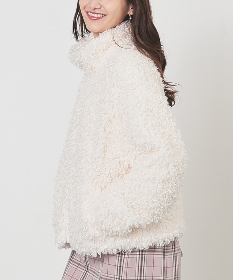 くるくるとした毛並みが可愛い、スタンドカラーのシンプルデザイン。