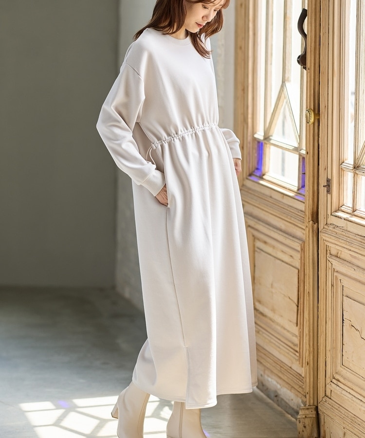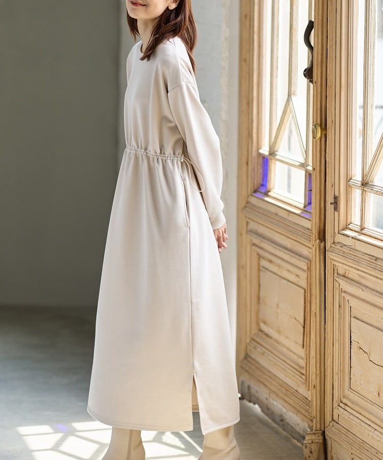 ウエストのドロストを絞って、1枚でさらっと着用するのがおすすめ♪