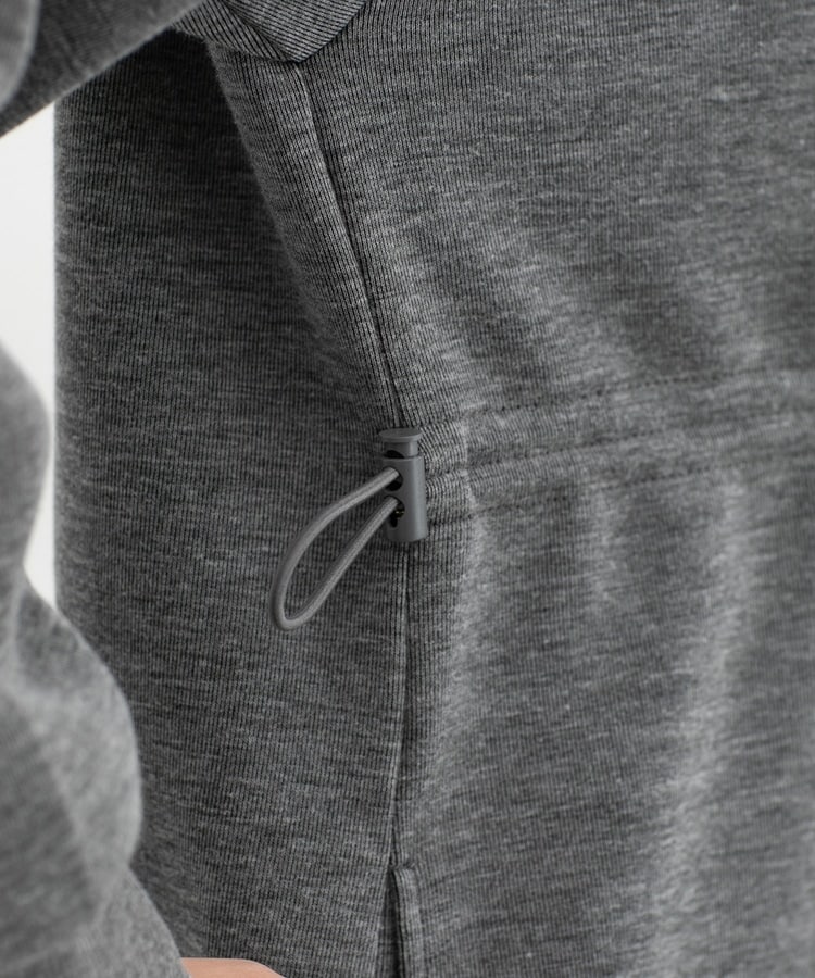 程よくハリのある、両面が滑らかなきれいめスウェット素材。