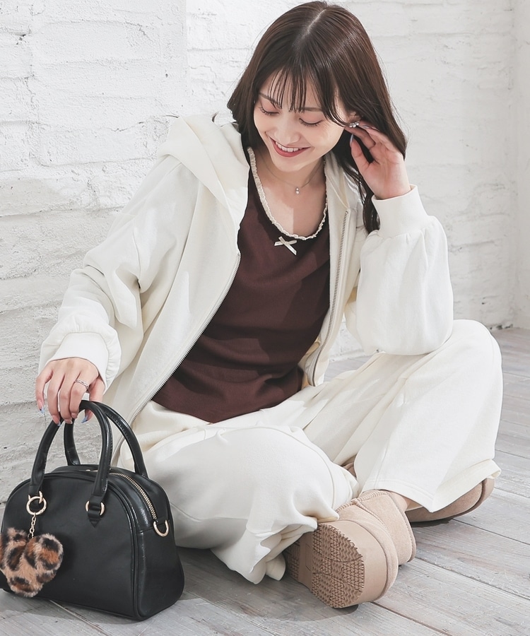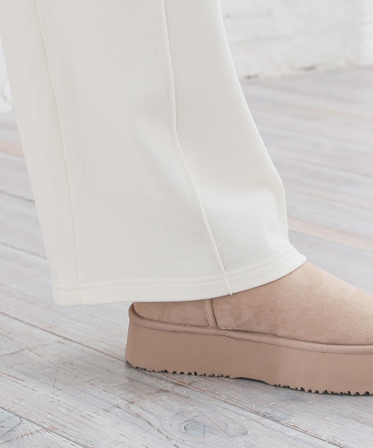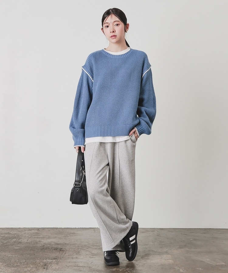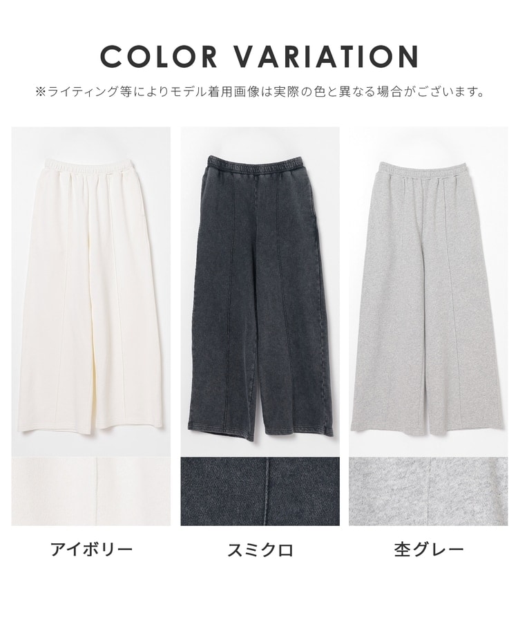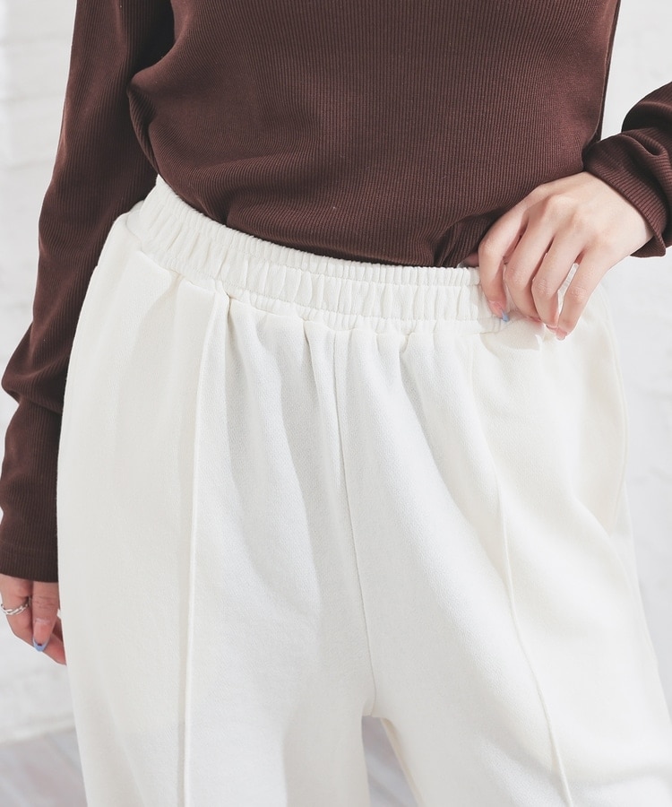 スウェットながらセンターシーム入りで、きちんと感も美脚効果も期待できるデザイン。