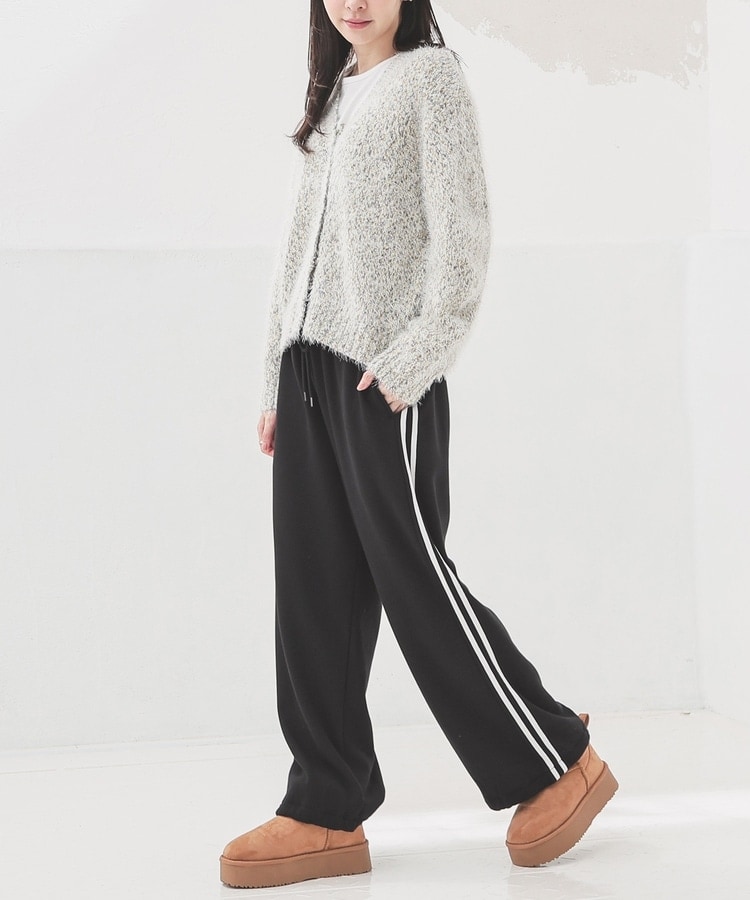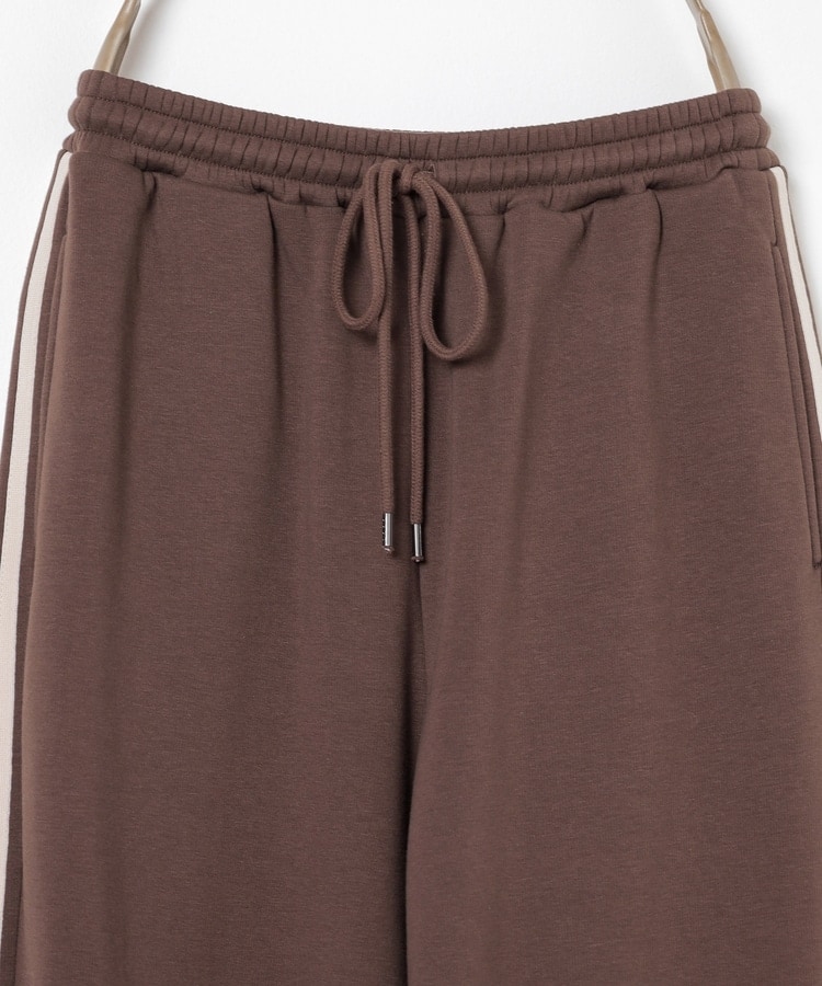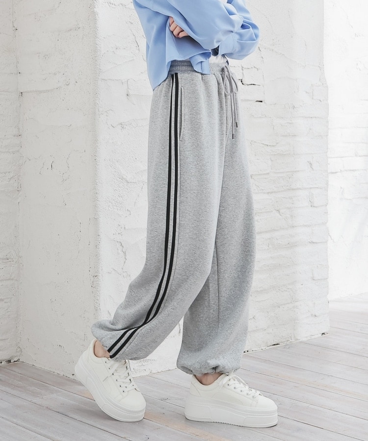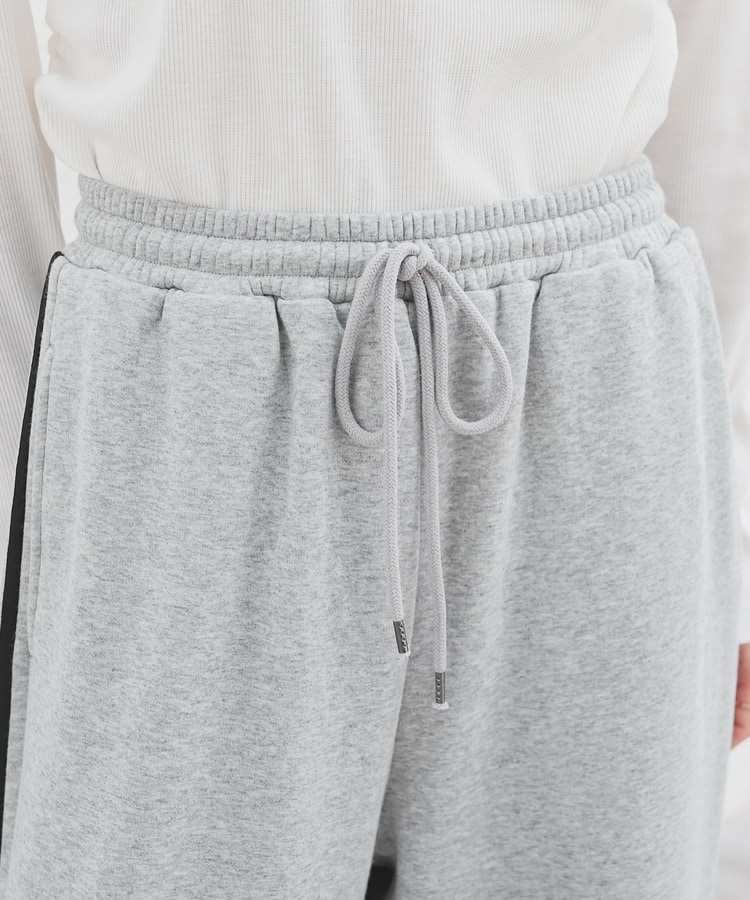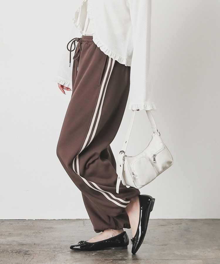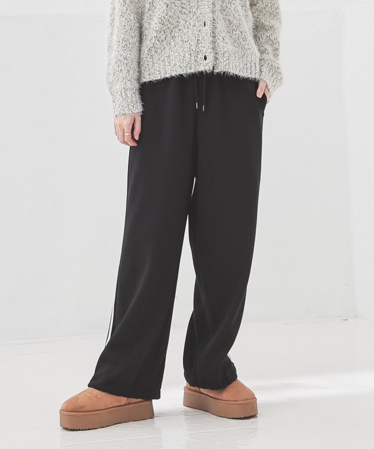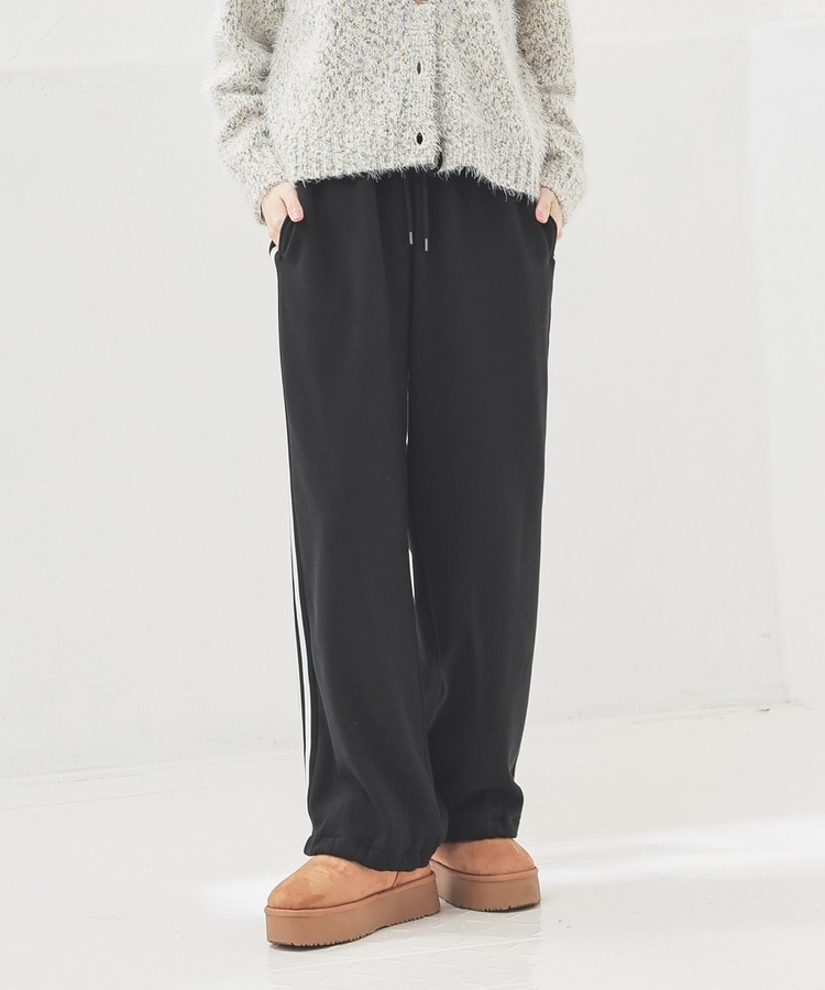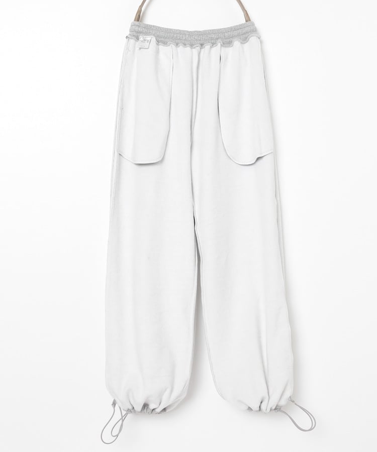 裾のドロストコードを緩めてストレートパンツとしても着用可能。