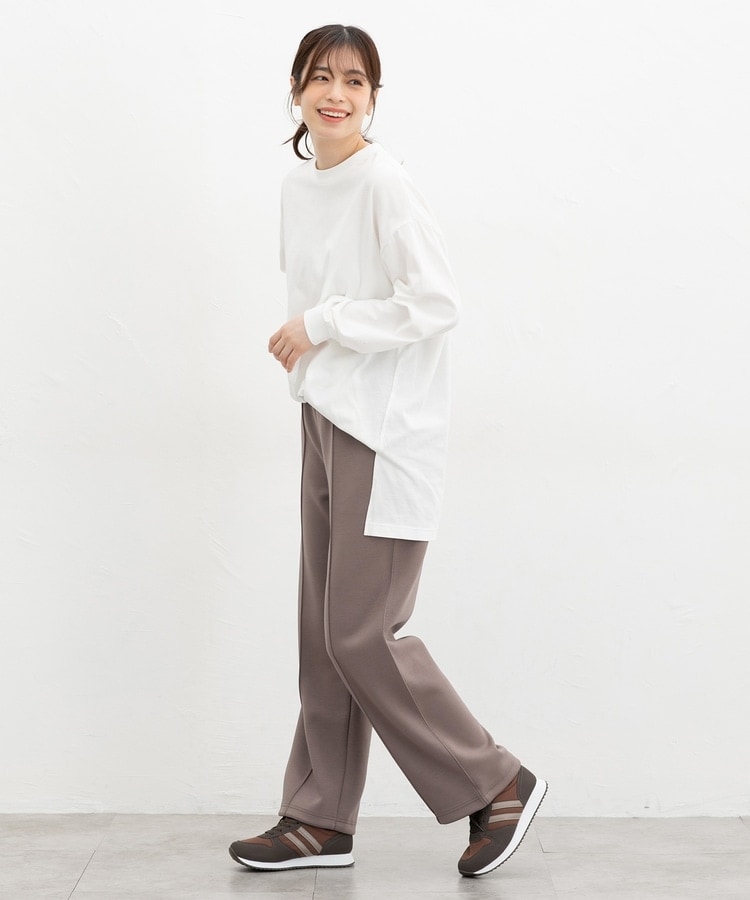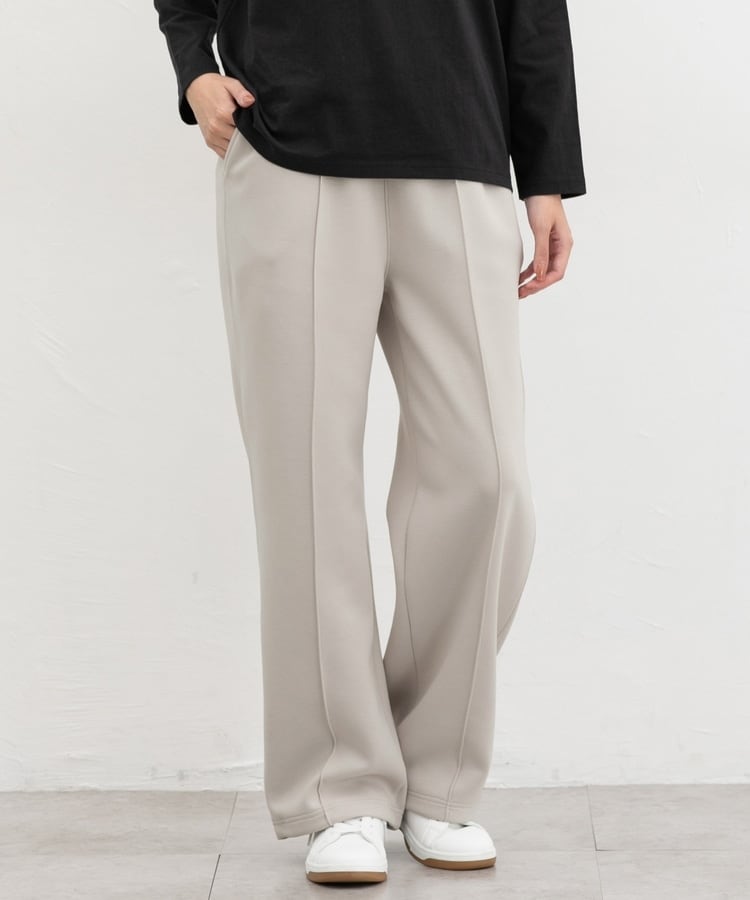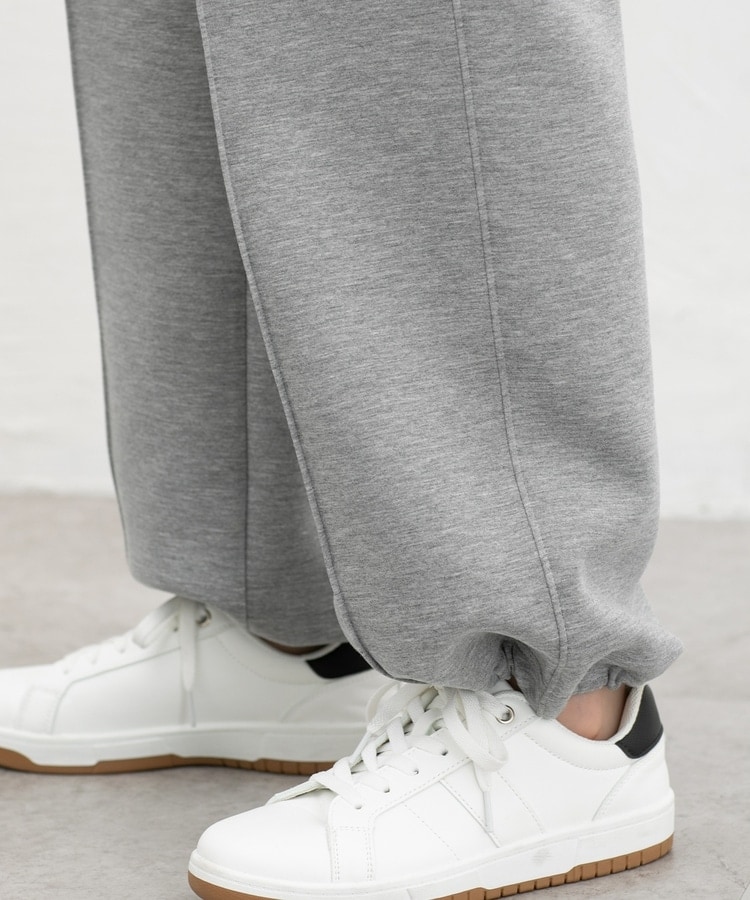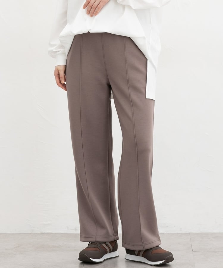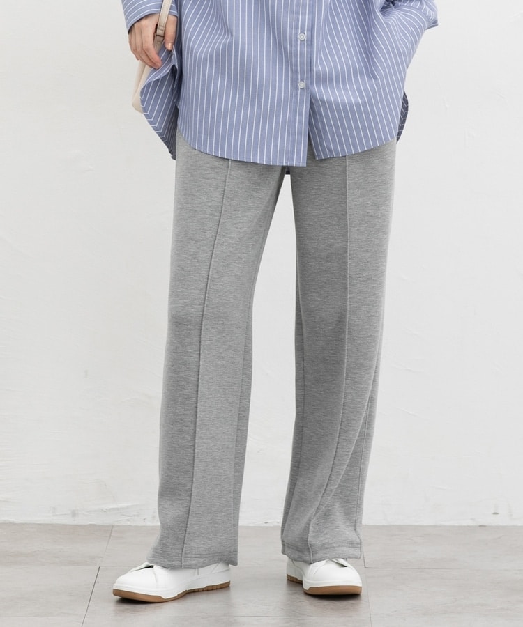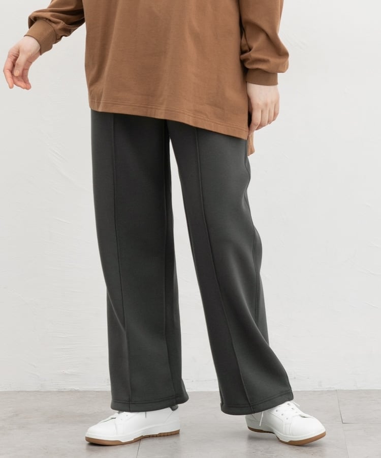 スウェットながらセンターシーム入りで、きちんと感も美脚効果も期待できるデザイン。