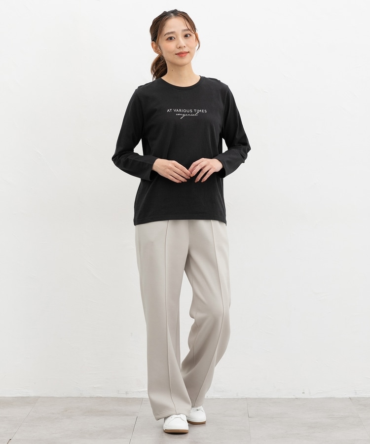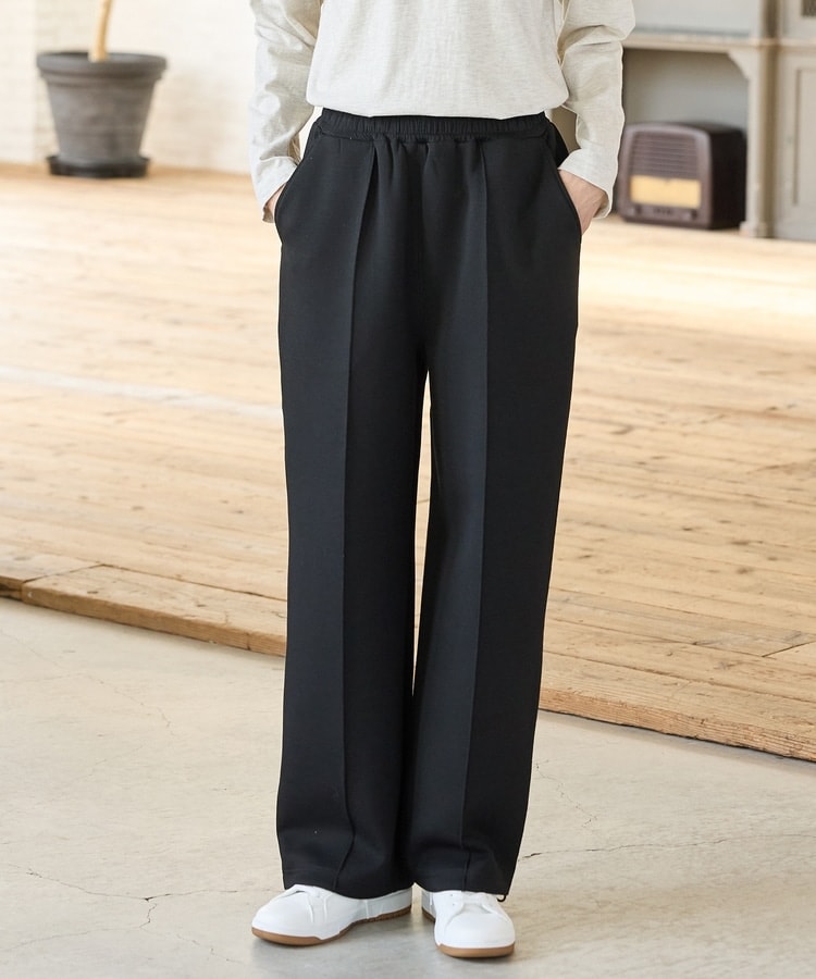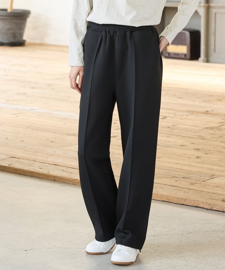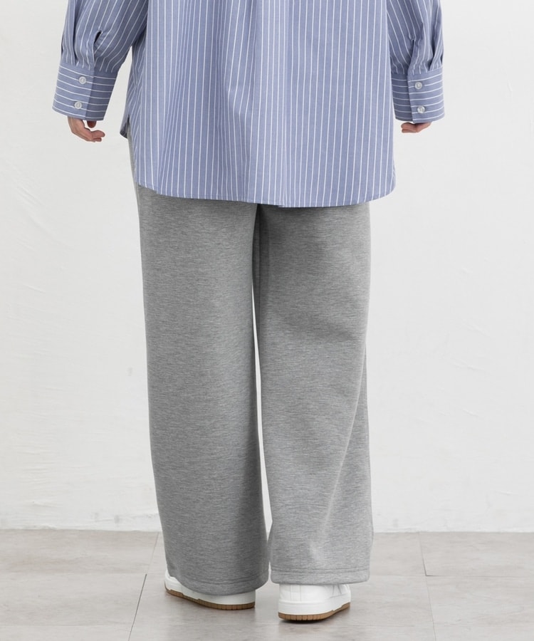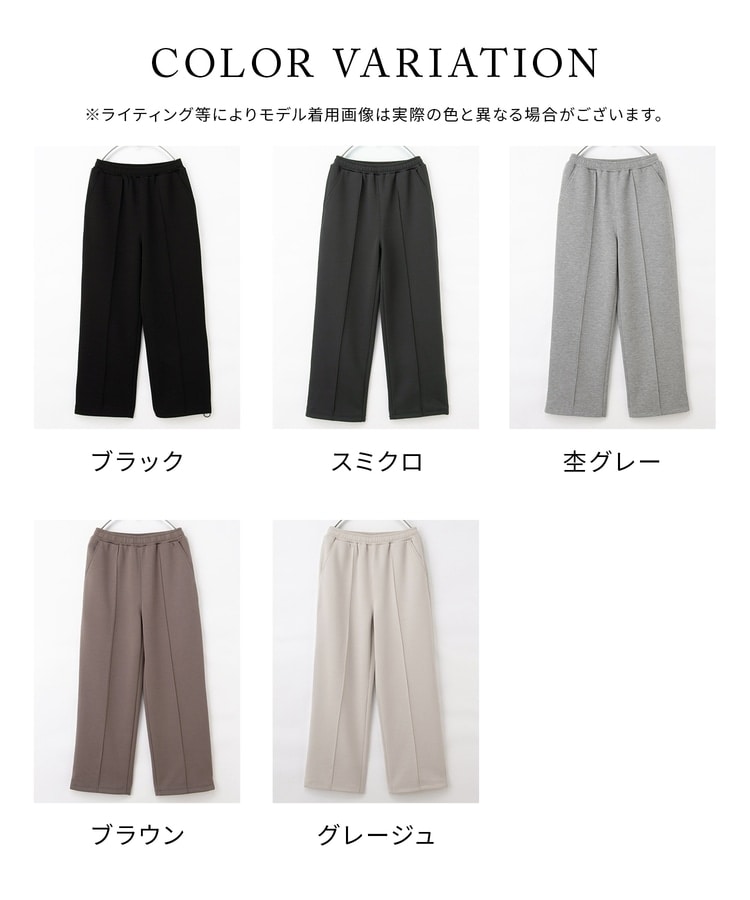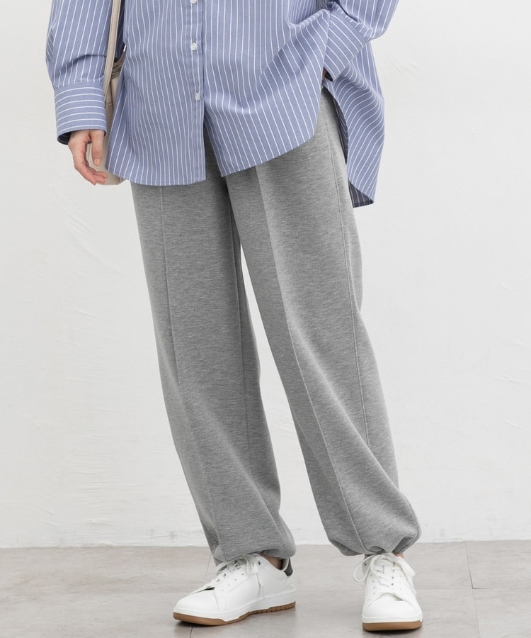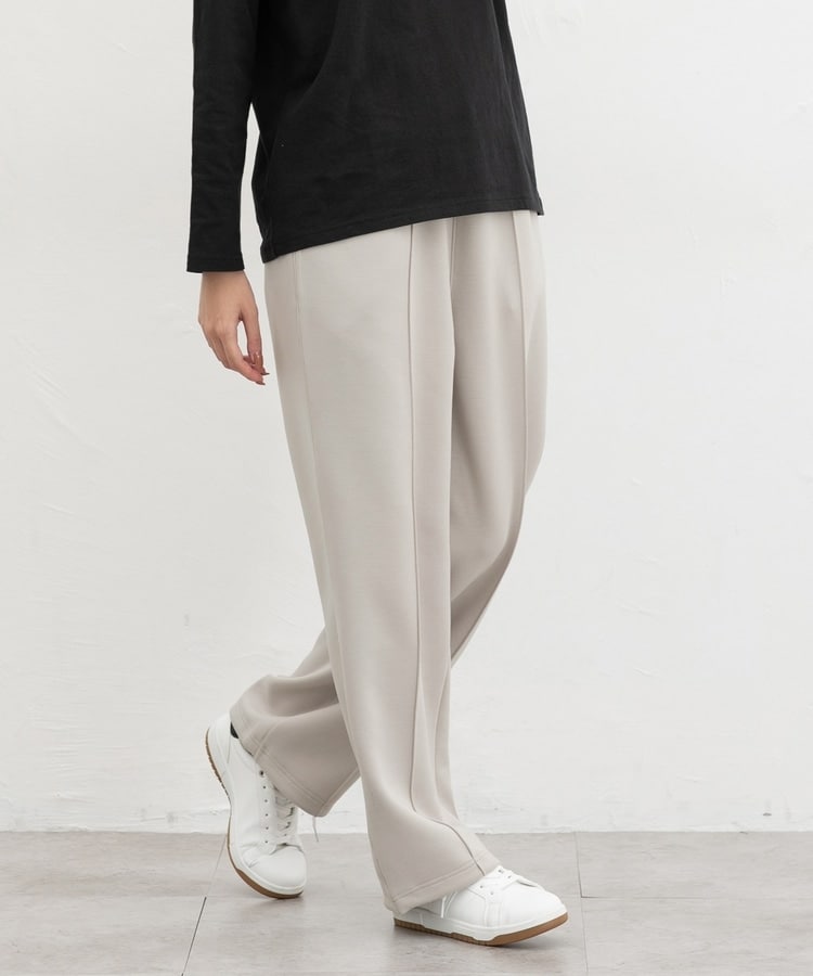 スウェットながらセンターシーム入りで、きちんと感も美脚効果も期待できるデザイン。