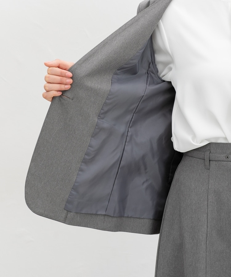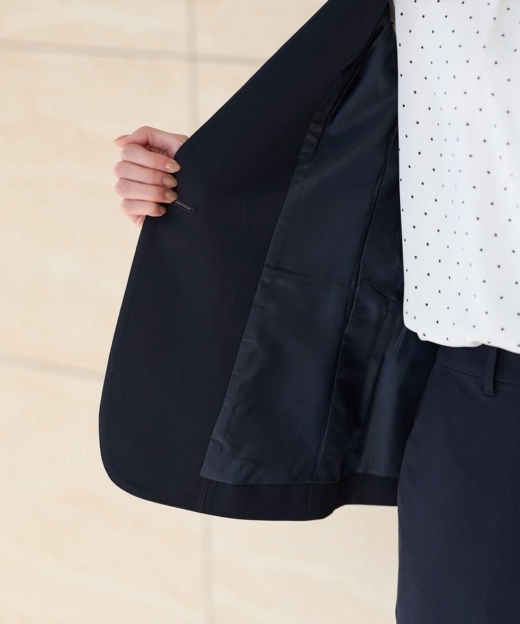 スカートにもパンツにも合う丈感と程よくシェイプされたウエストラインの、すっきり見えシルエット。