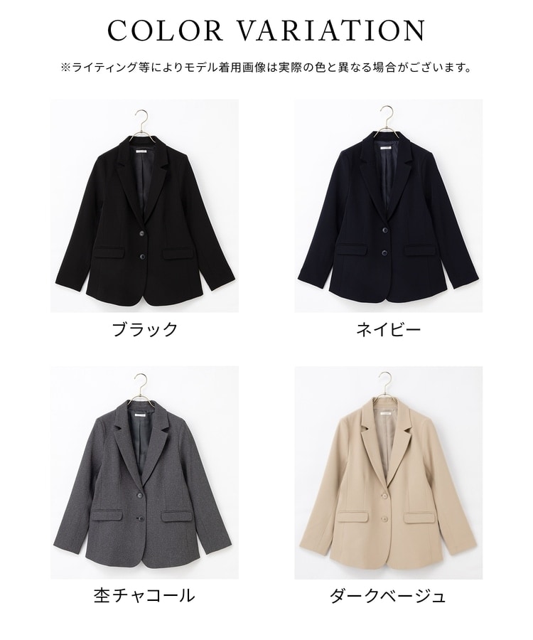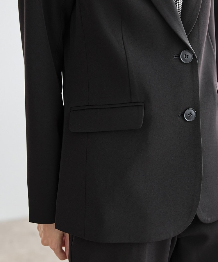 ベーシックなテーラードカラーの2つボタンタイプ。