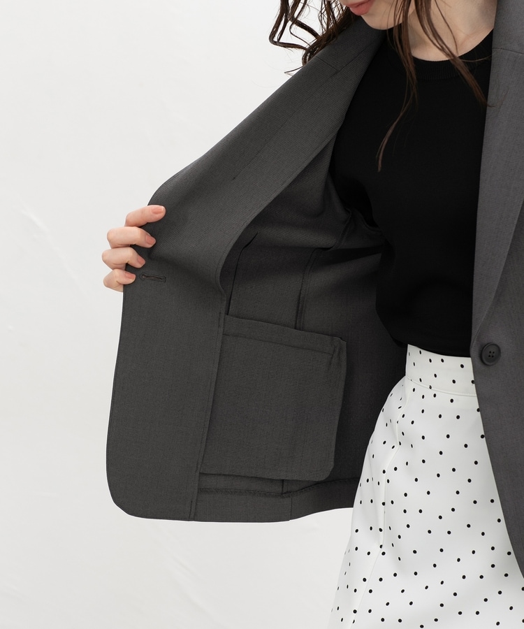 ベーシックなテーラードカラーの1つボタンタイプ。