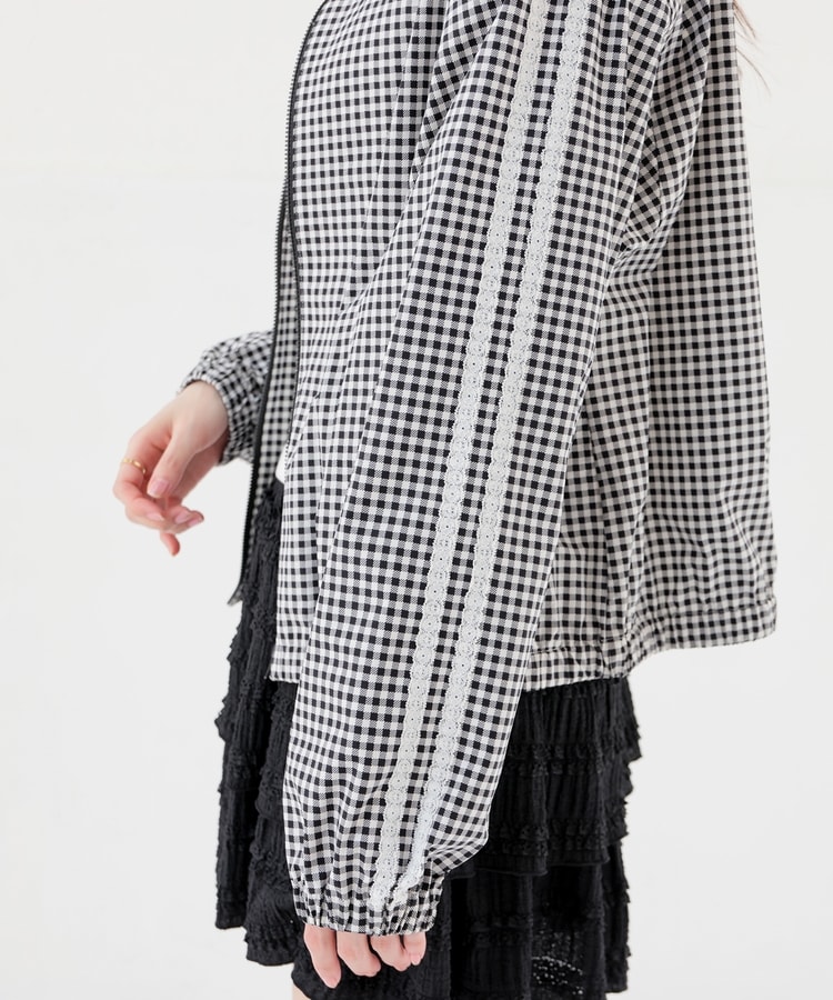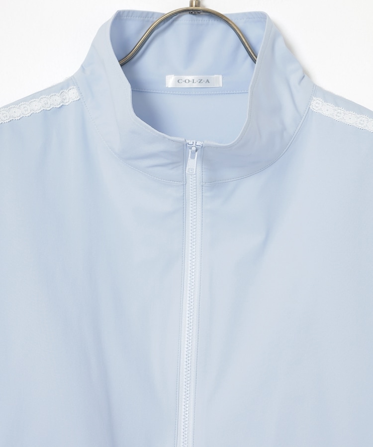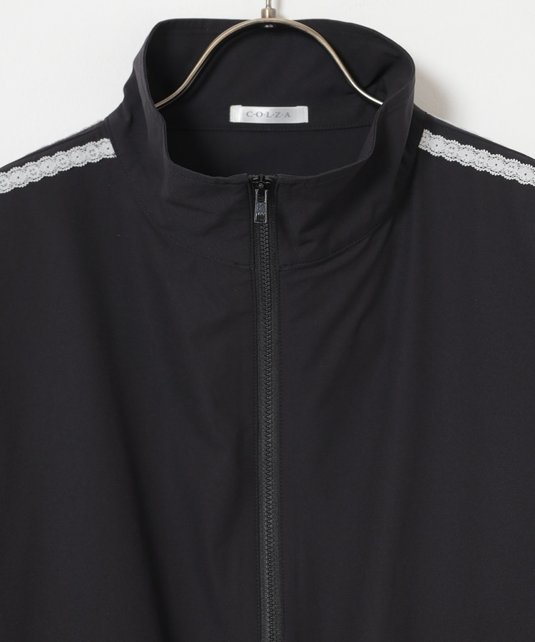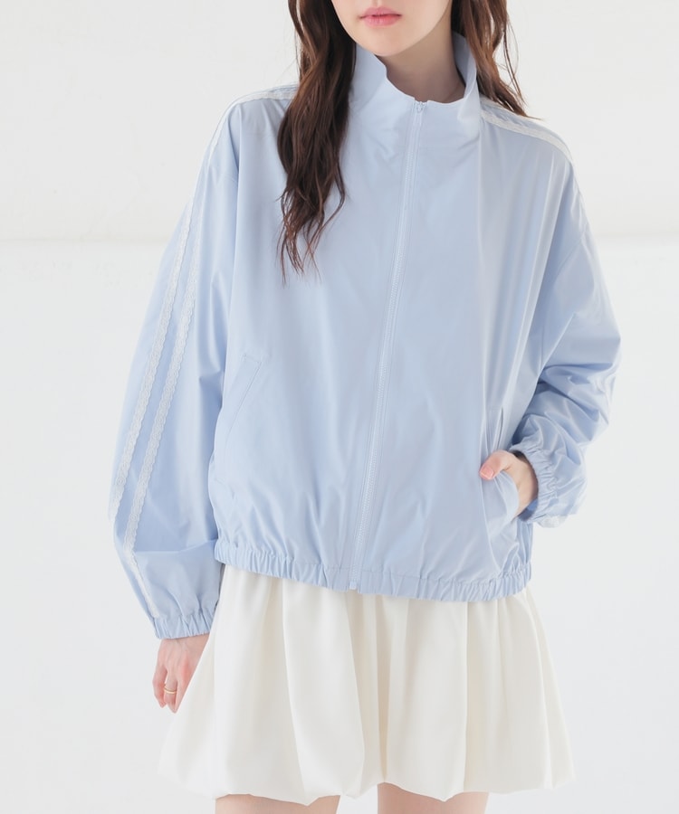 袖にレースのラインを入れた、フェミニン×スポーティーなデザイン。