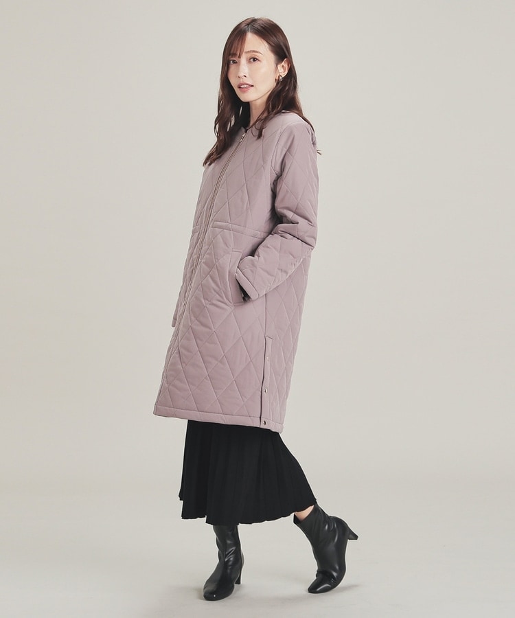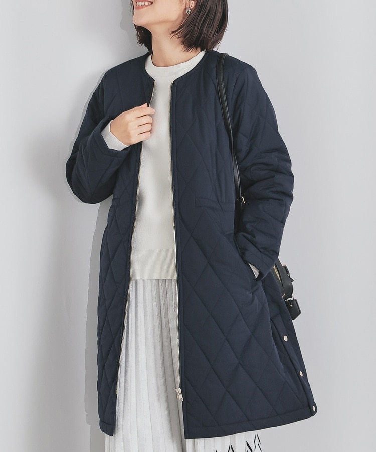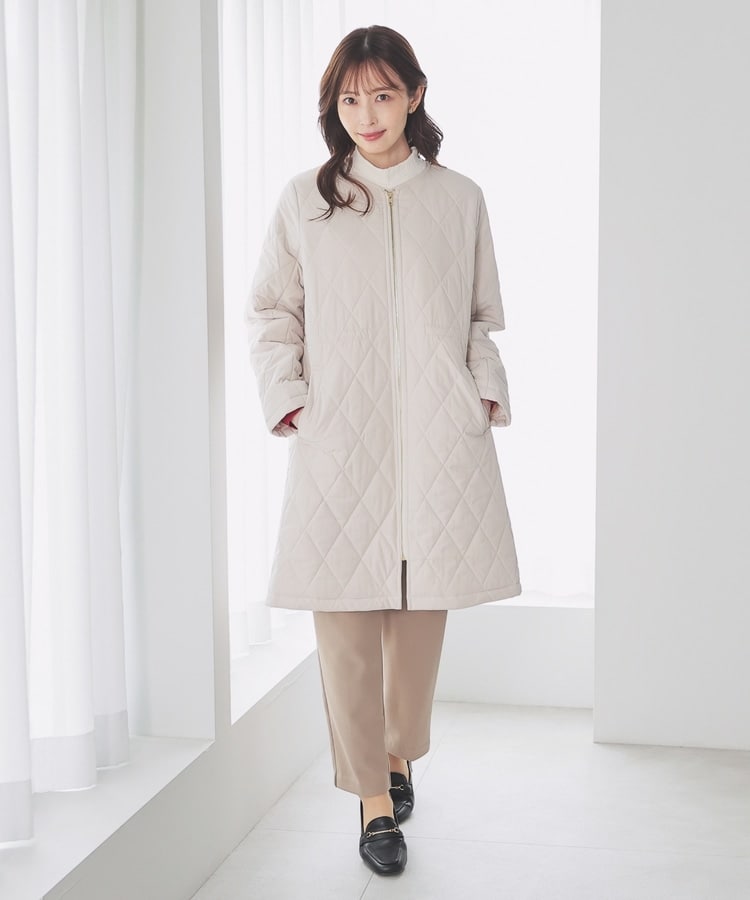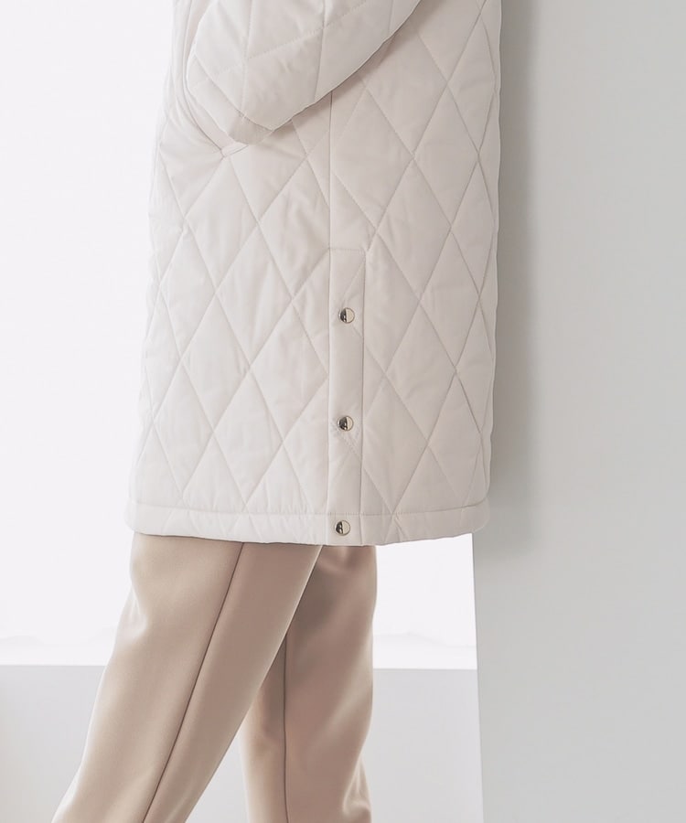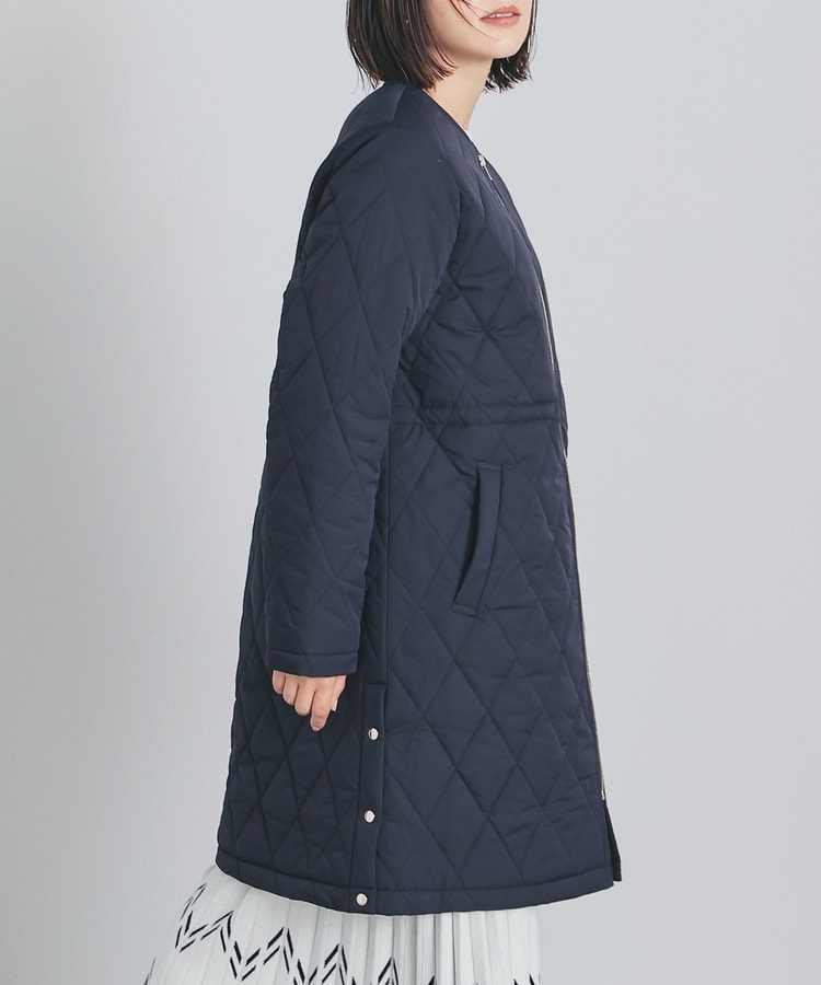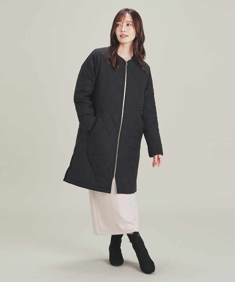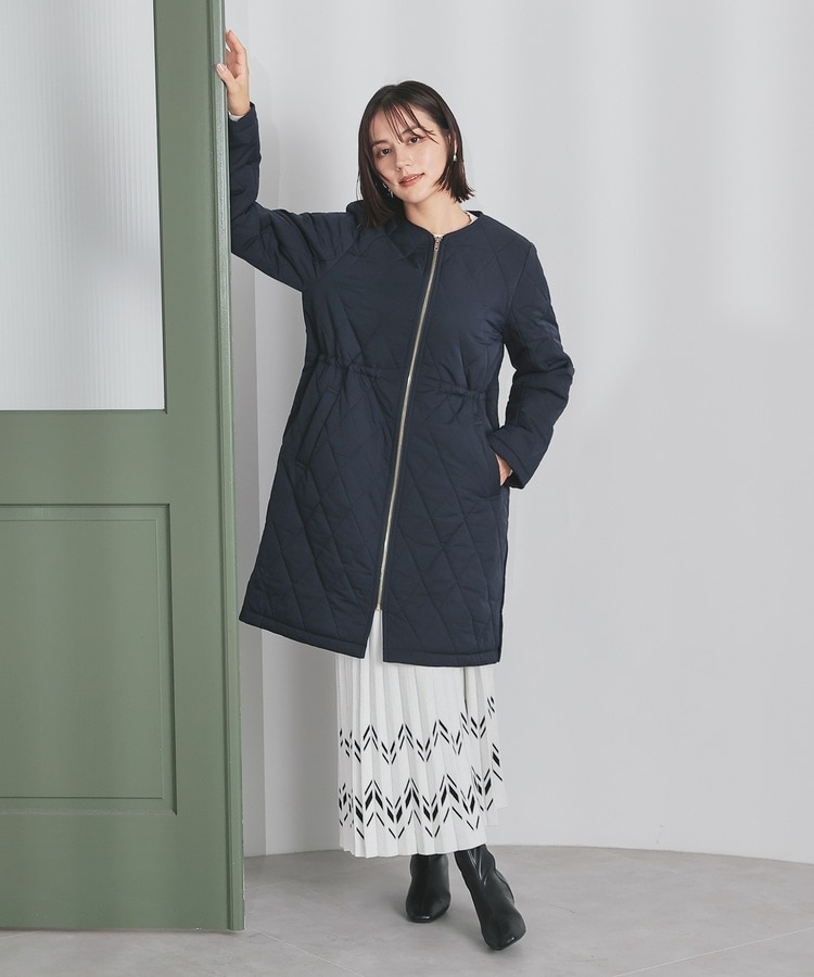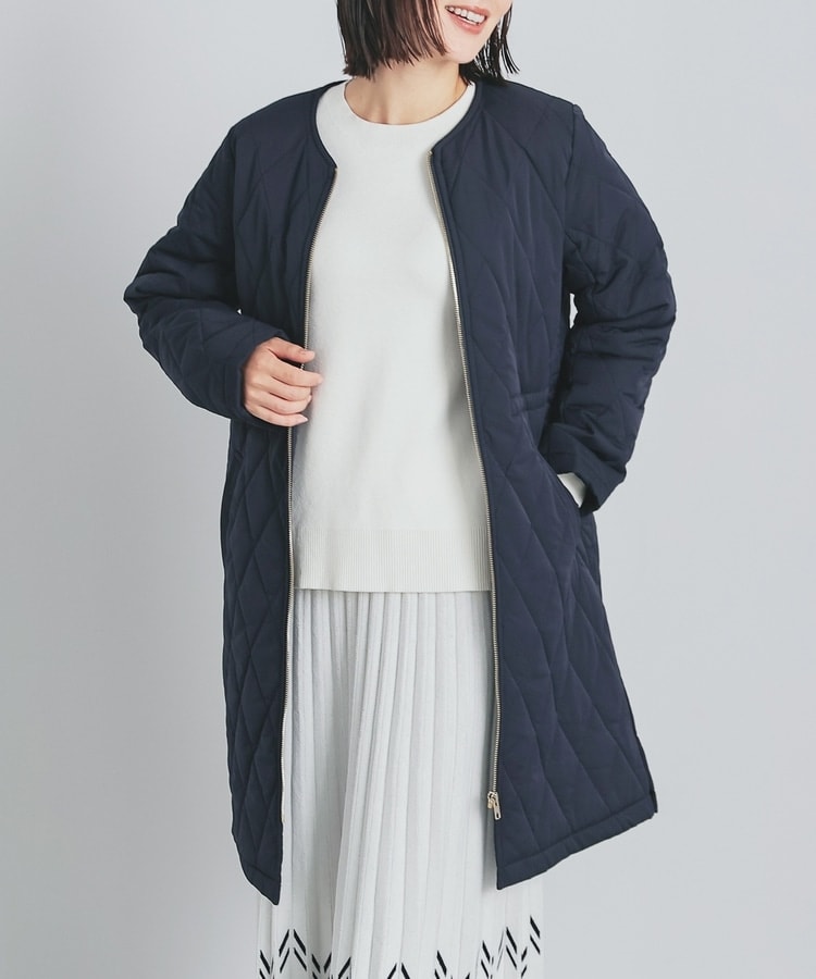 環境に優しい再生ポリエステルを使用した、軽くて暖かな中綿キルト素材で着心地抜群。