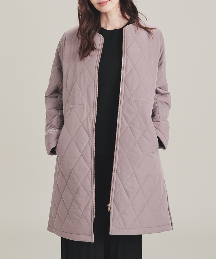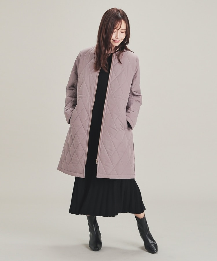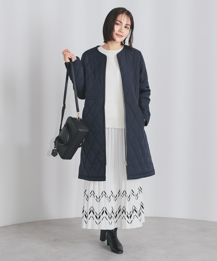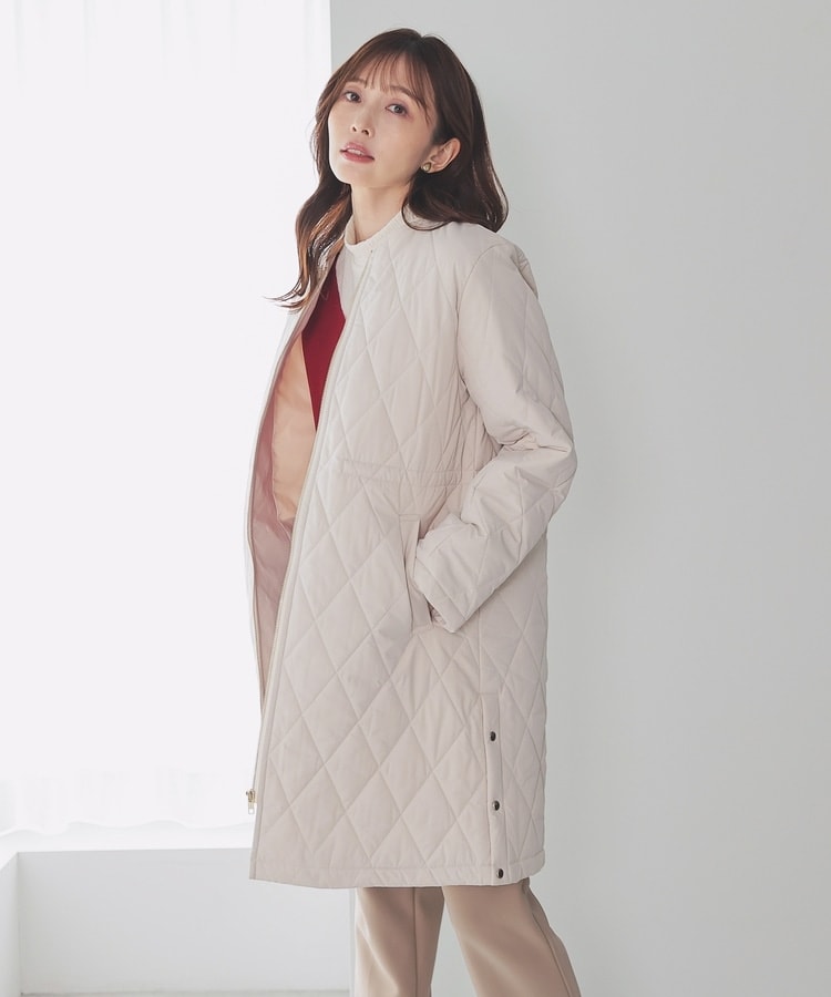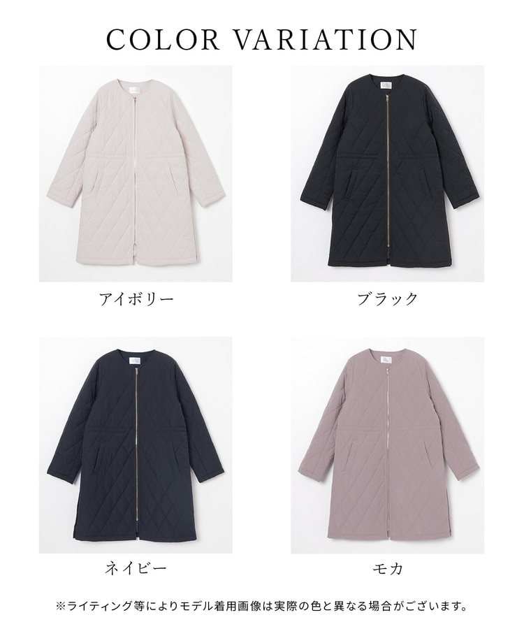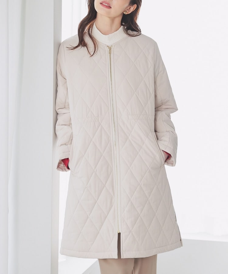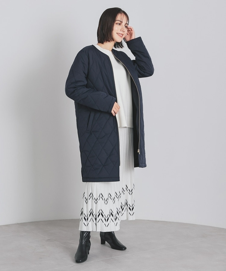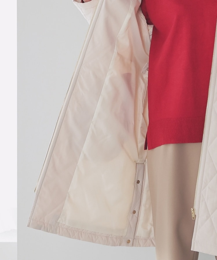環境に優しい再生ポリエステルを使用した、軽くて暖かな中綿キルト素材で着心地抜群。