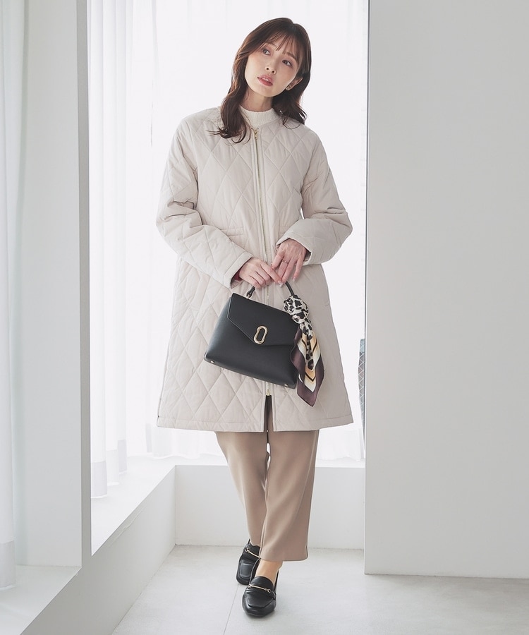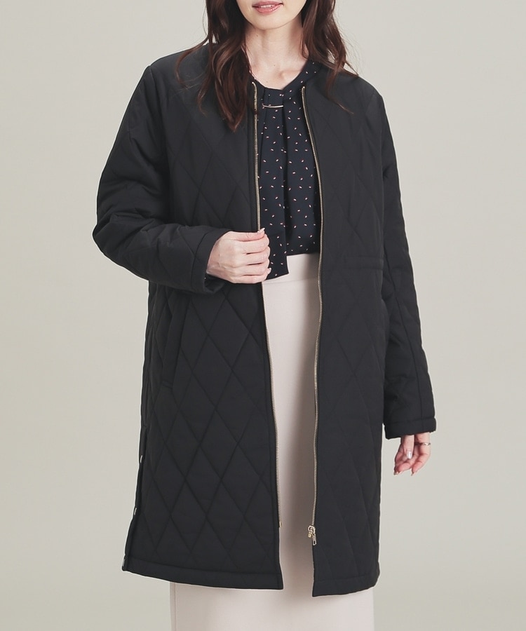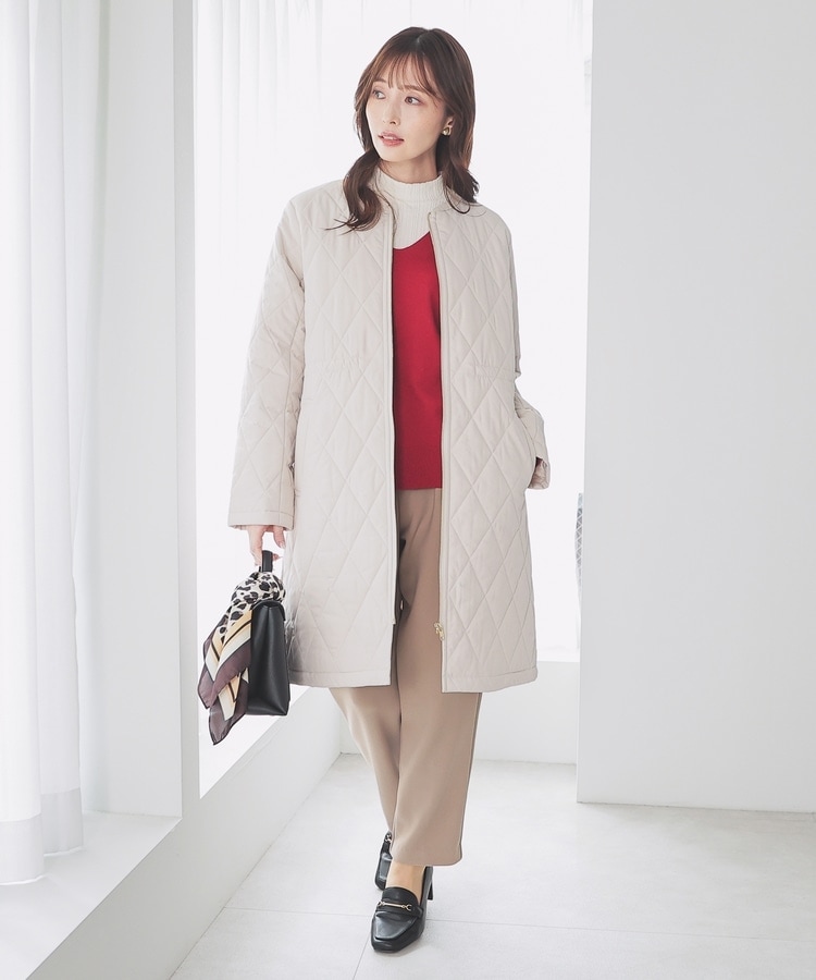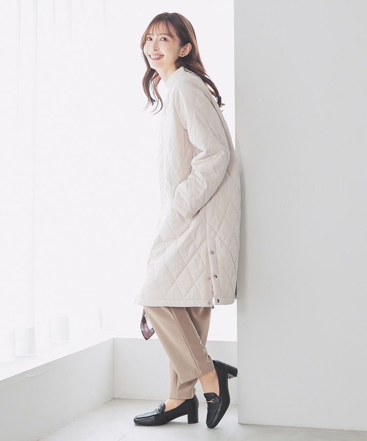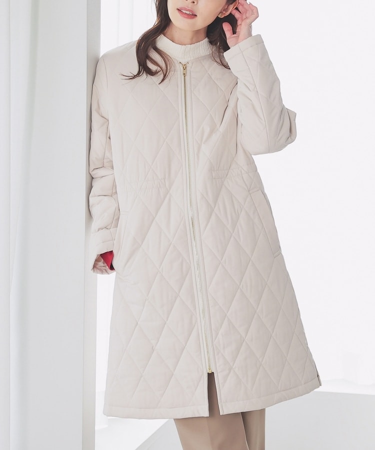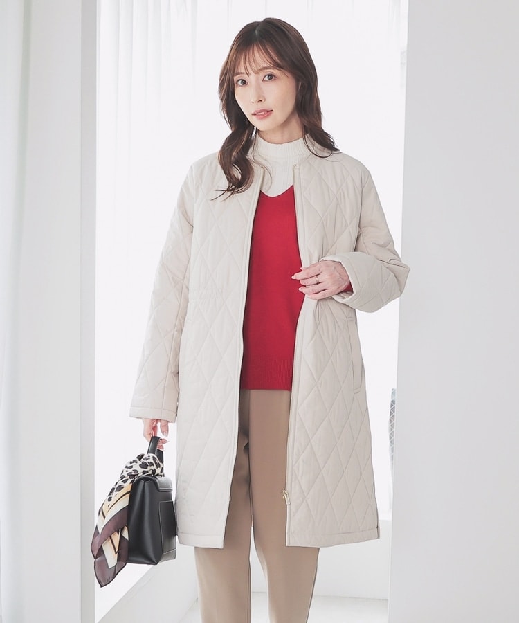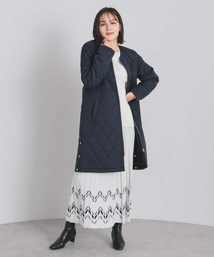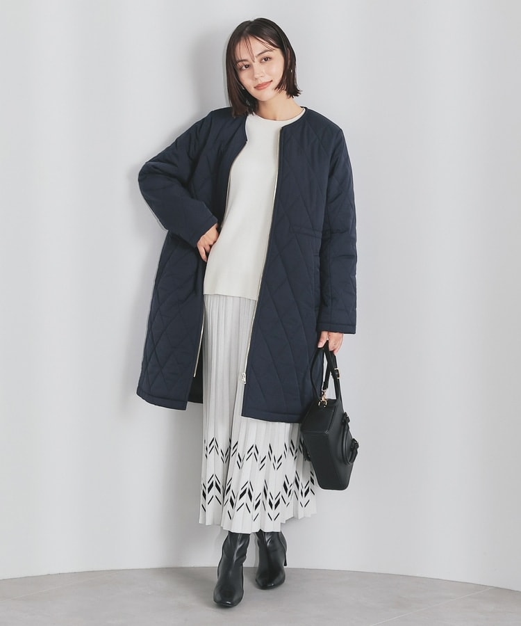 環境に優しい再生ポリエステルを使用した、軽くて暖かな中綿キルト素材で着心地抜群。