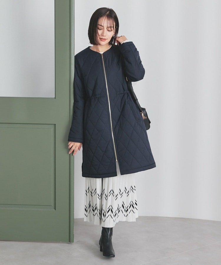 ゆったりめ幅×ジップアップでしっかりと暖かい、膝下まで隠れるロング丈。