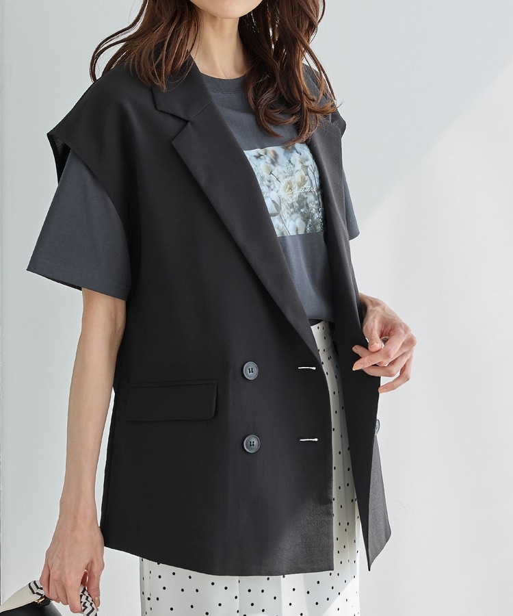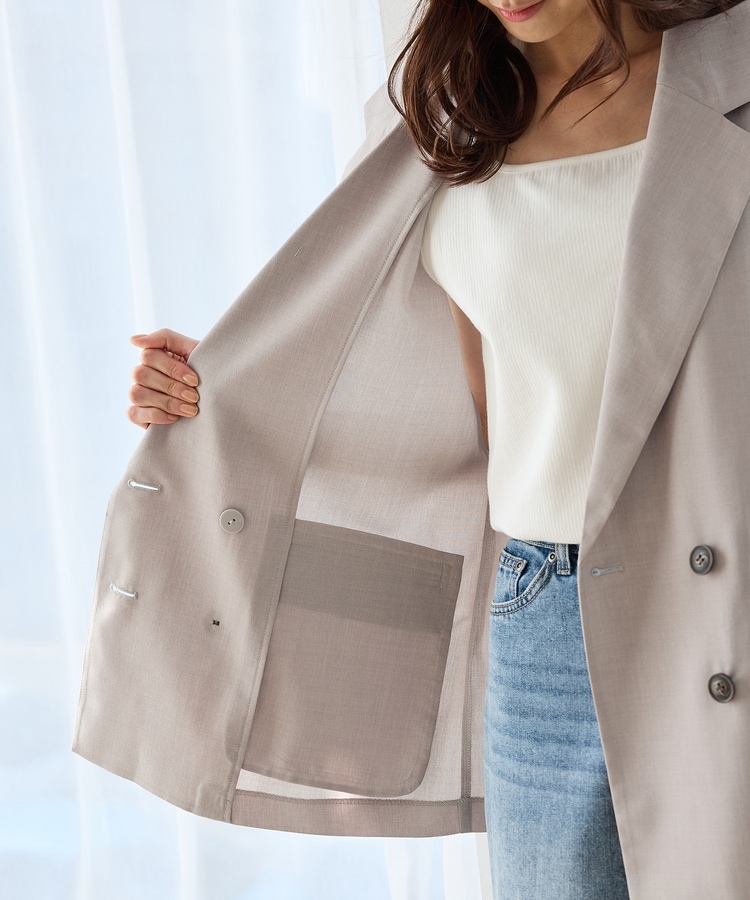 さっと羽織るだけでおしゃれに決まる、ダブルボタンのテーラードデザイン。
