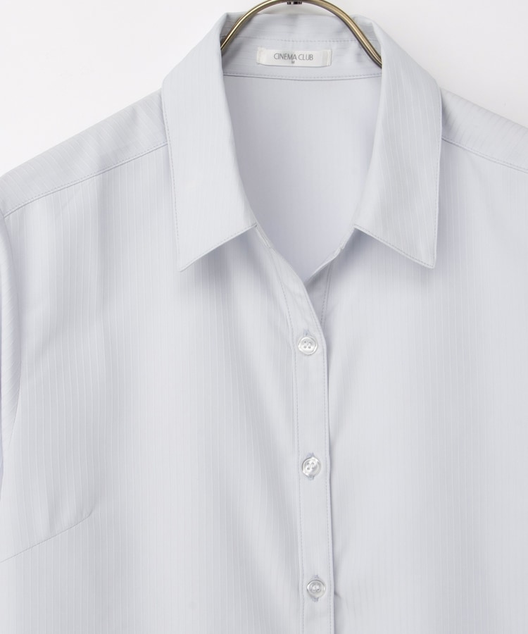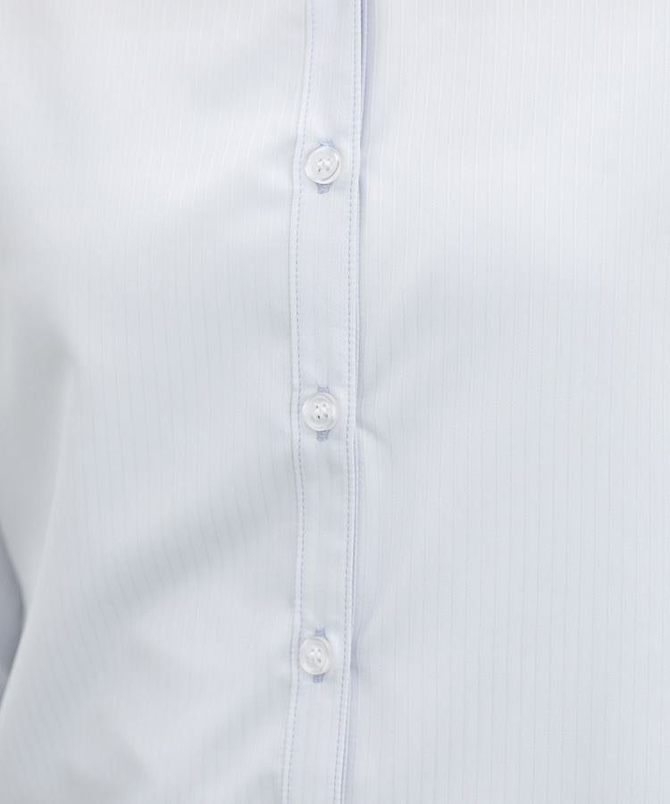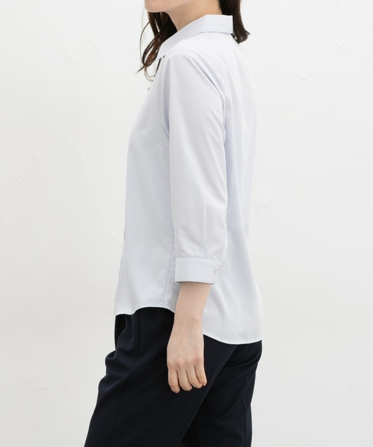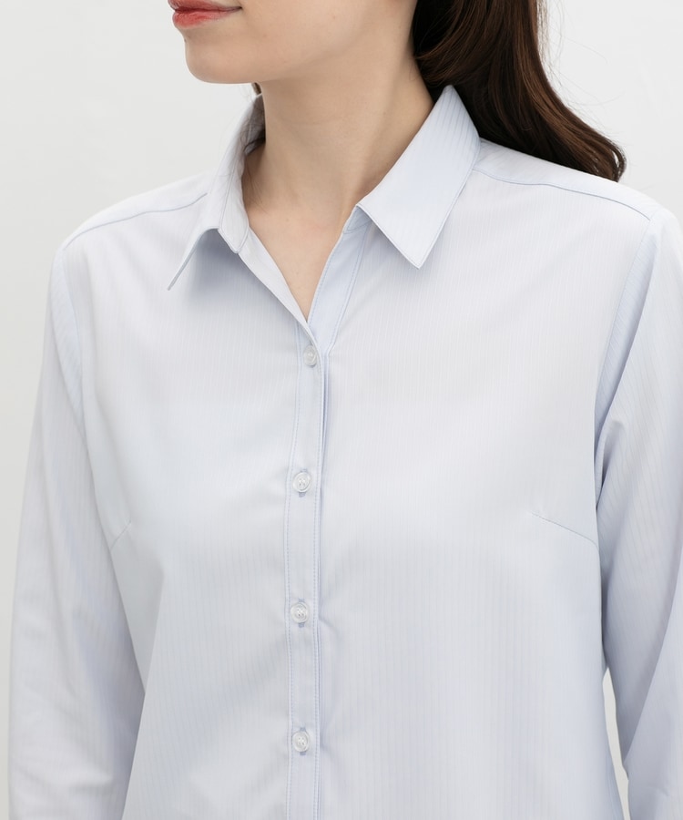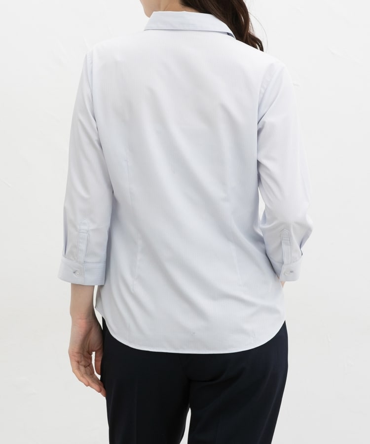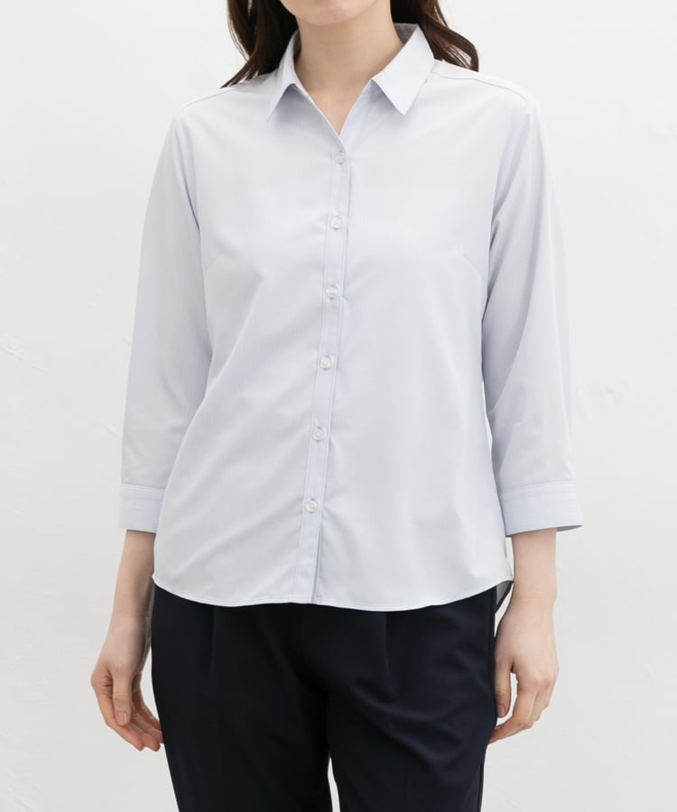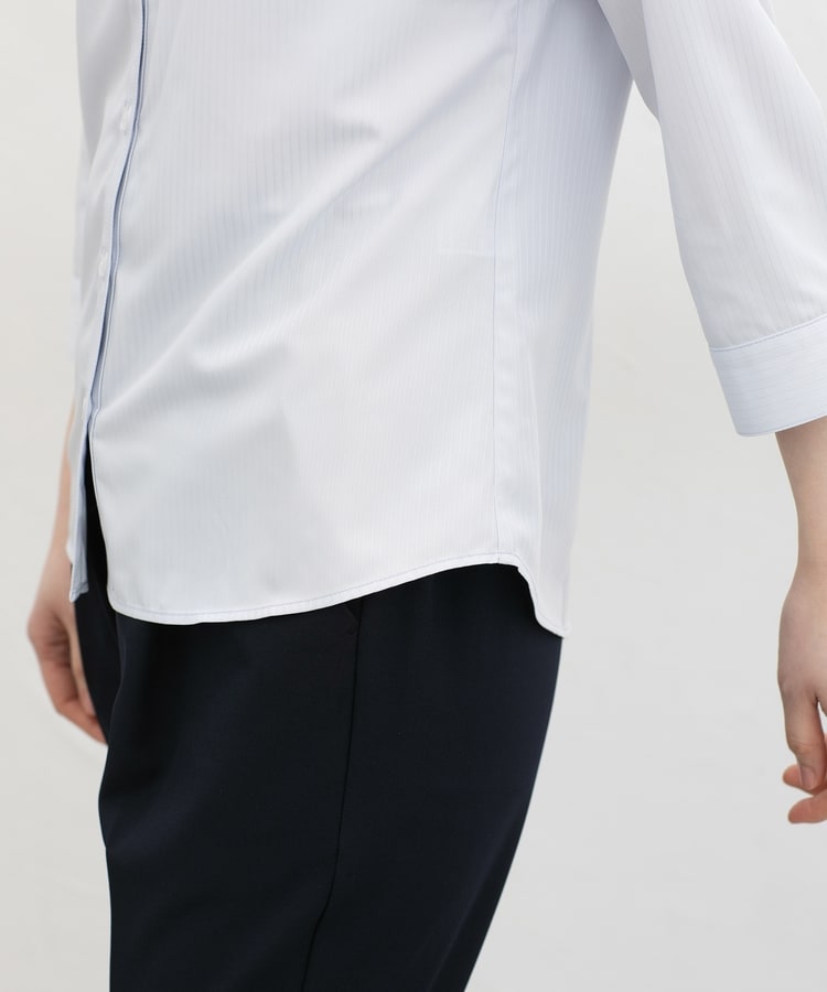 すっきりとしたスキッパー衿で、さりげなく入った織り柄が上品なシンプルデザイン。