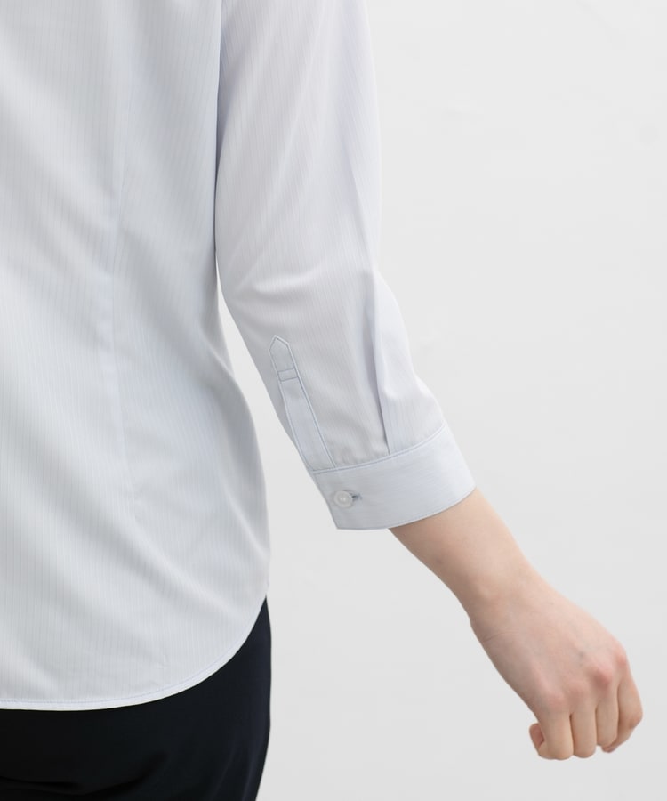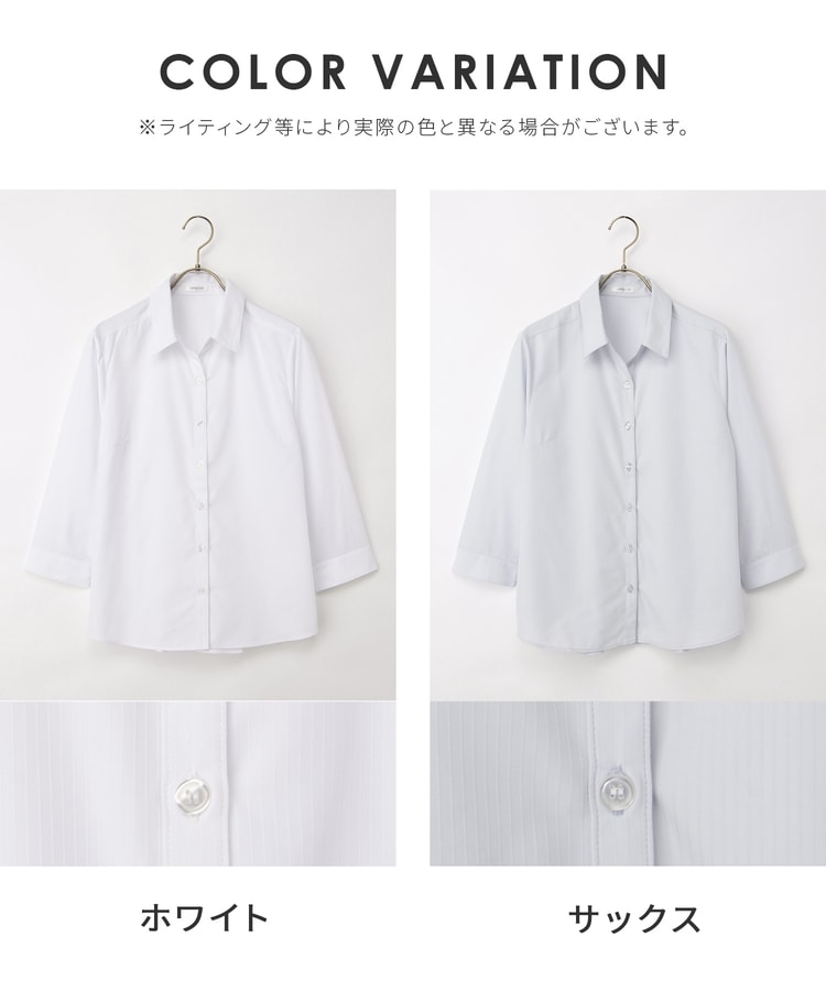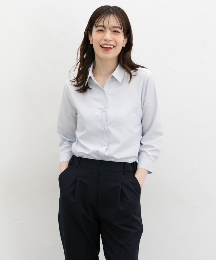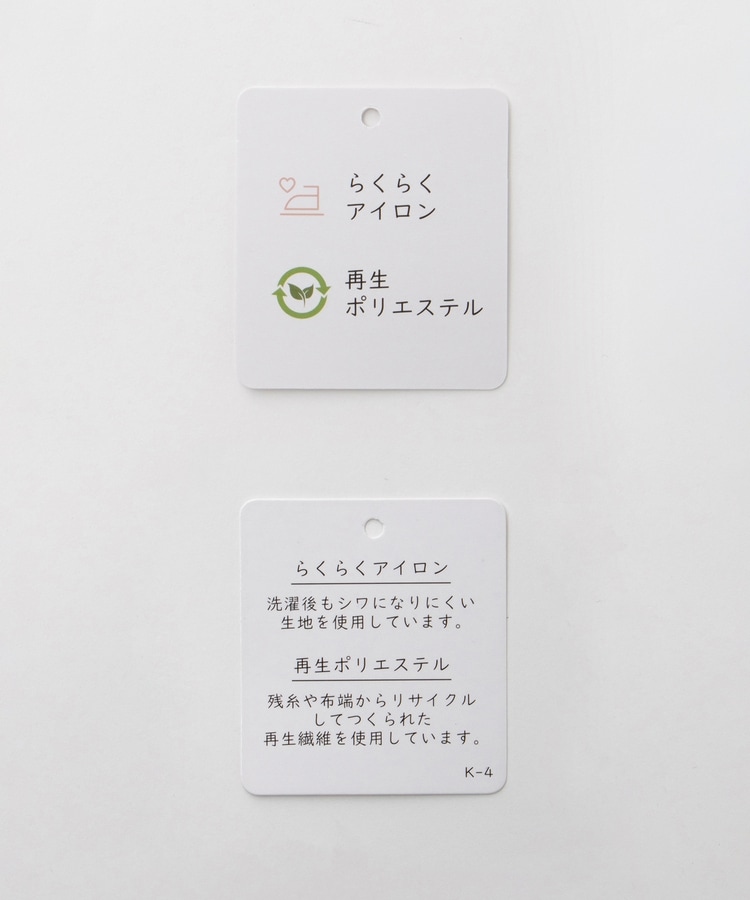 環境に優しい再生ポリエステルを使用した、洗濯後もシワになりにくくお手入れ簡単な『らくらくアイロン』素材。