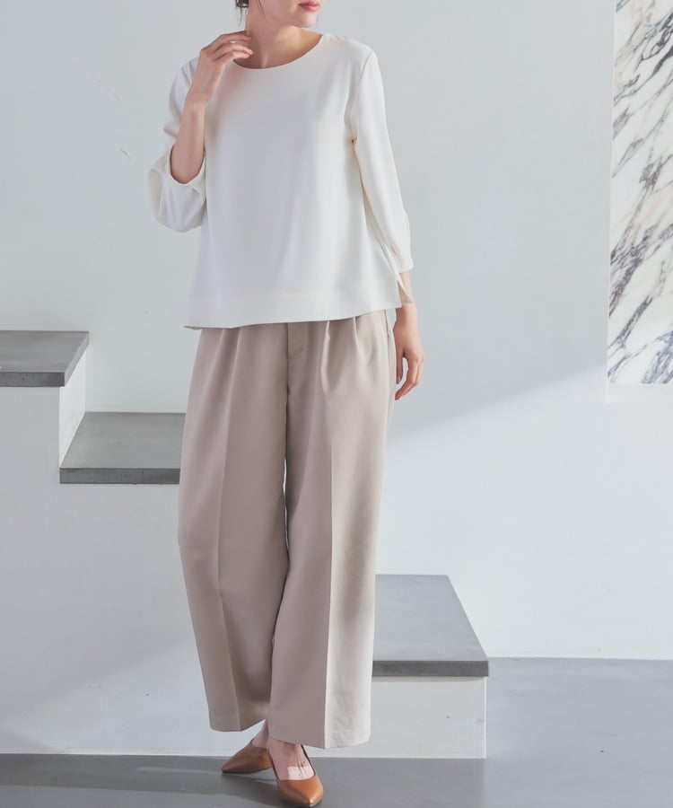 袖口のタックで立体的にボリュームを出した、大人フェミニンなデザイン。