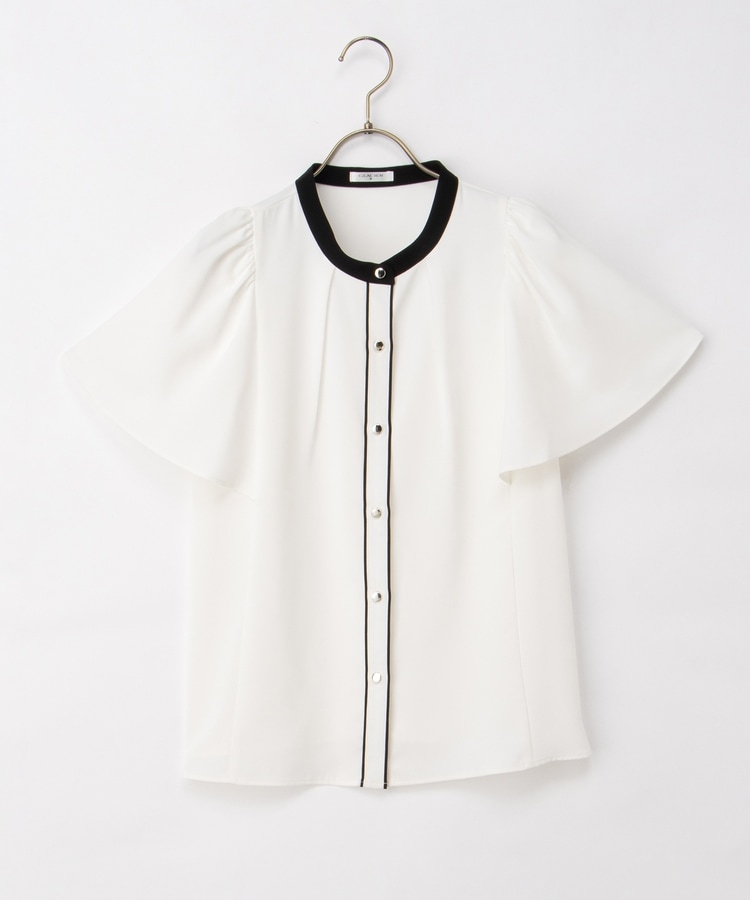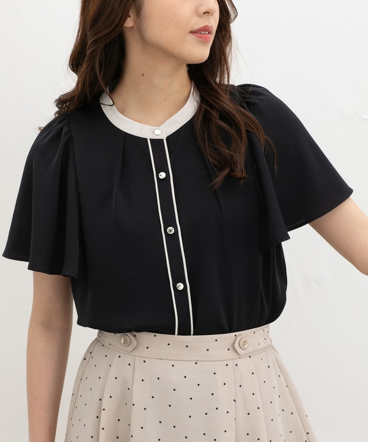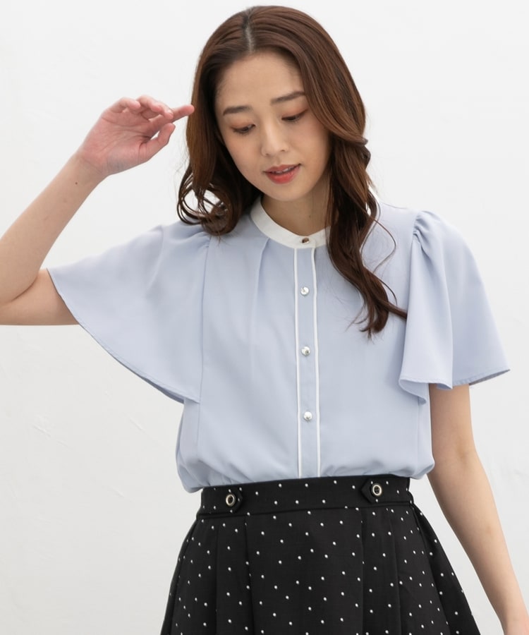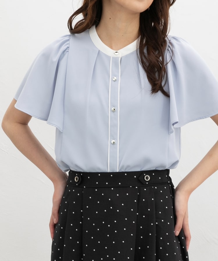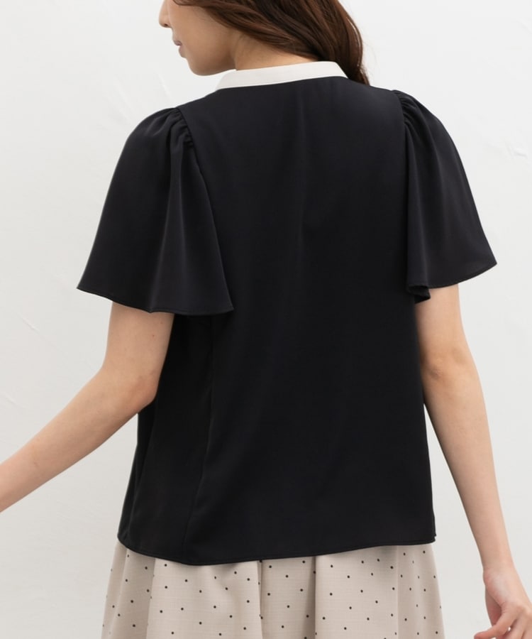 配色フレア袖ブラウス