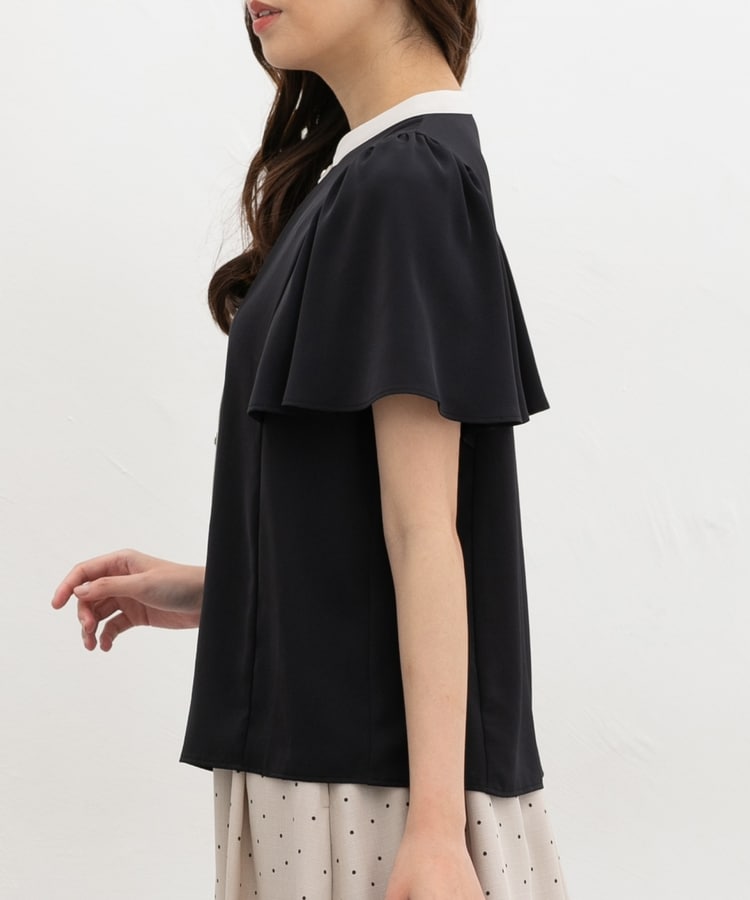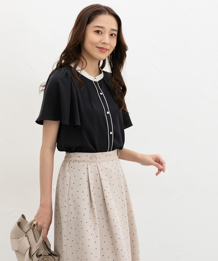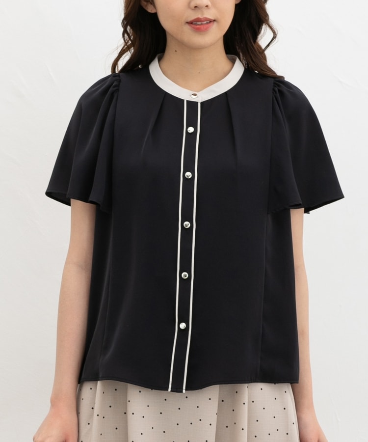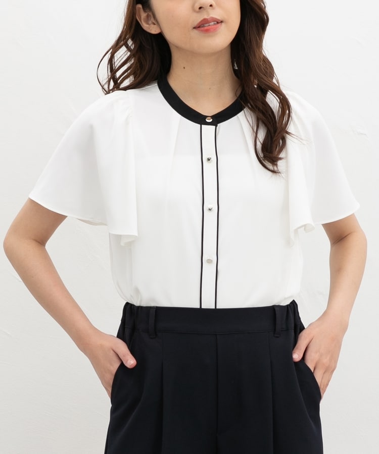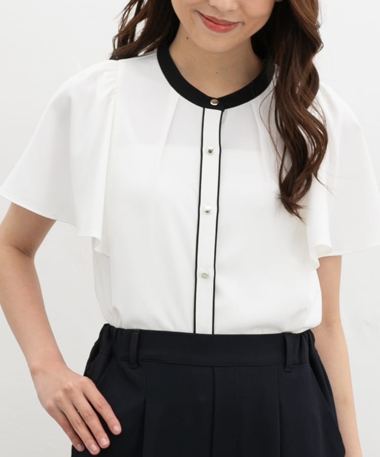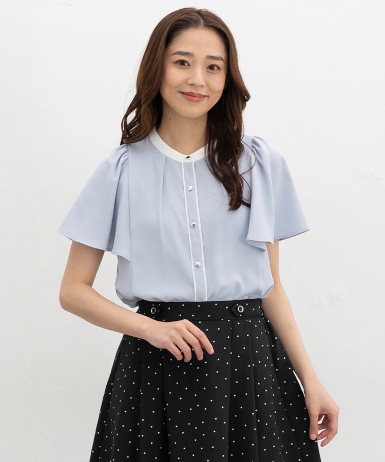 配色フレア袖ブラウス