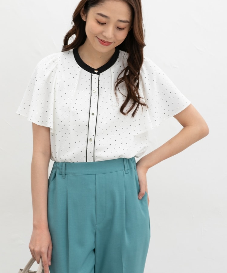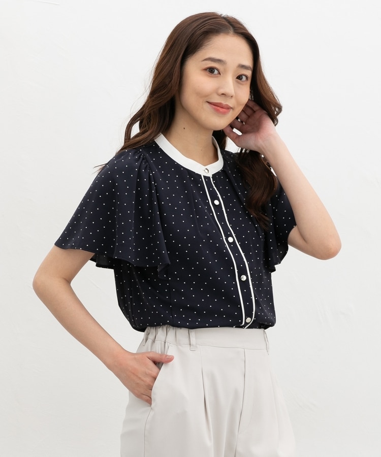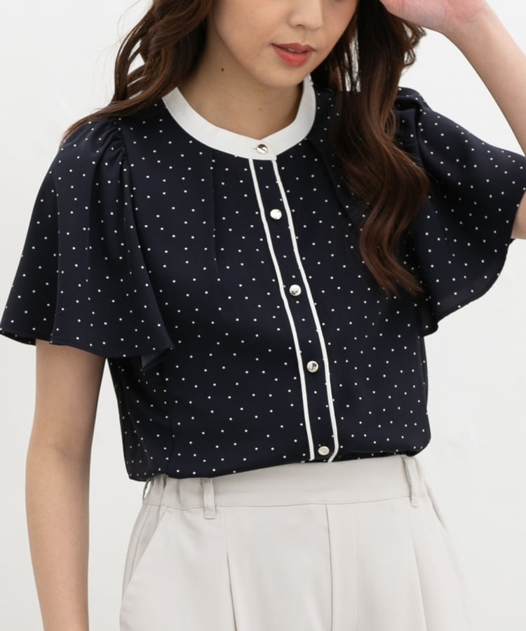 気になる二の腕をおしゃれにカバーできる、ひらひらのフレア袖がフェミニンなデザイン。