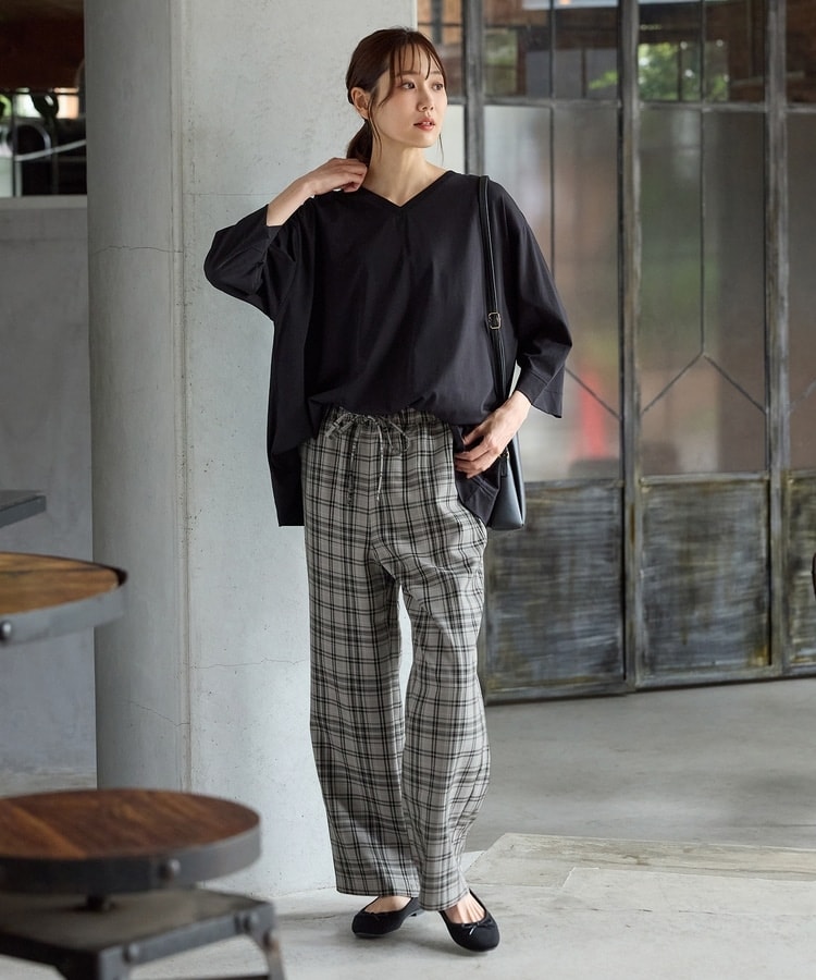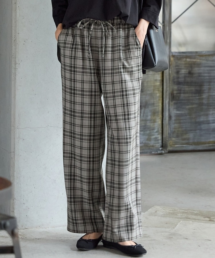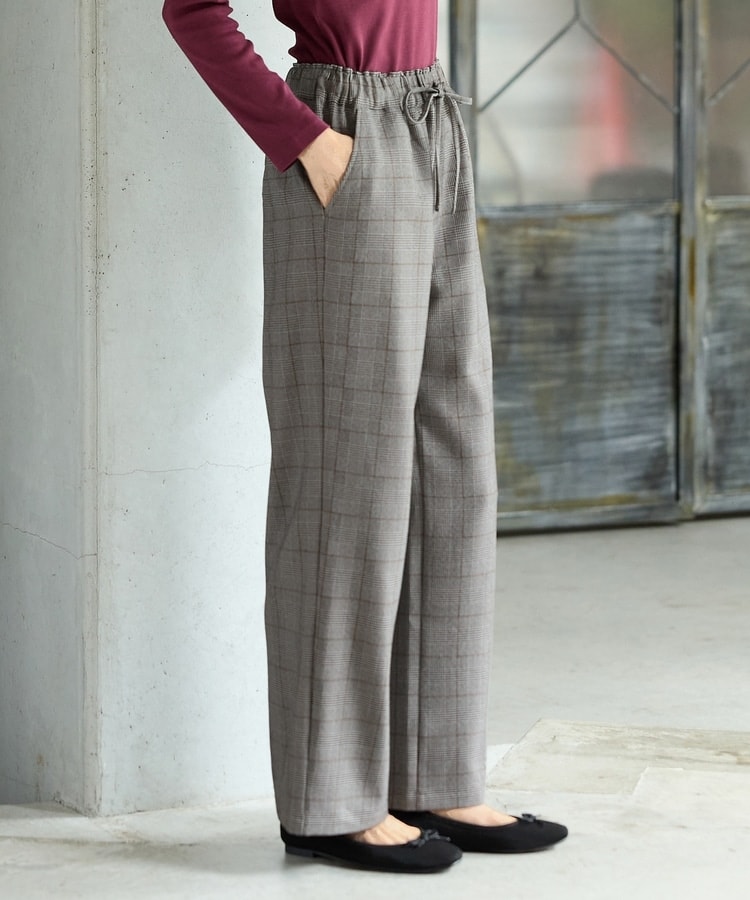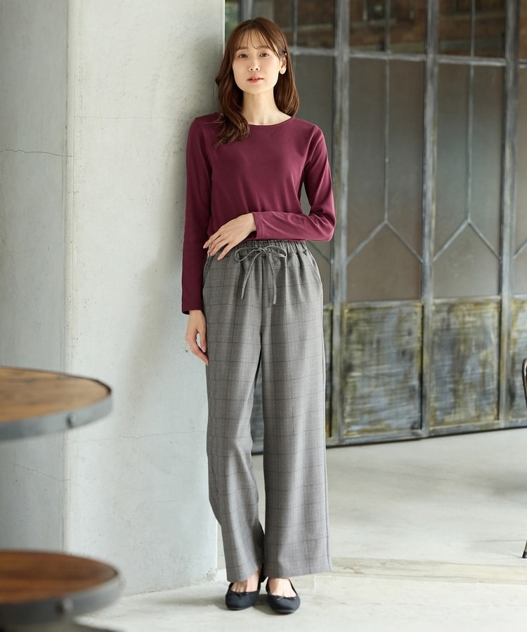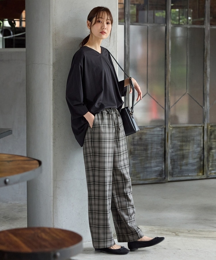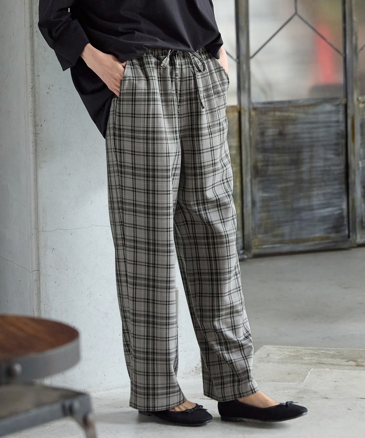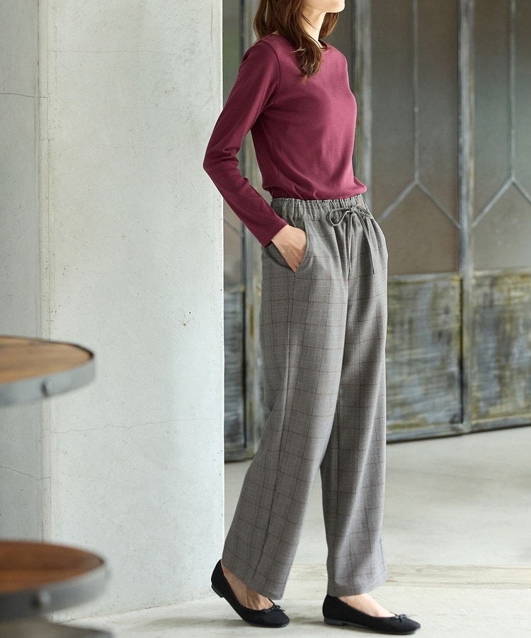 イージーパンツながらきれいめな素材感で、普段使いはもちろん、お出掛けにもぴったり。